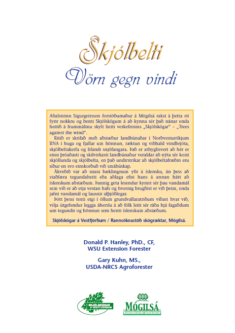 Þetta rit fjallar um hönnun, ræktun og viðhald vindbrjóta, skjólbeltakerfa og lifandi snjófangara í norðvesturríkjum Bandaríkjanna. Þetta er íslensk þýðing en ekki staðfærð. Hún er þó gagnleg til að kynna sér þau vandamál sem við er að etja vestan hafs og hvernig brugðist er við þeim.