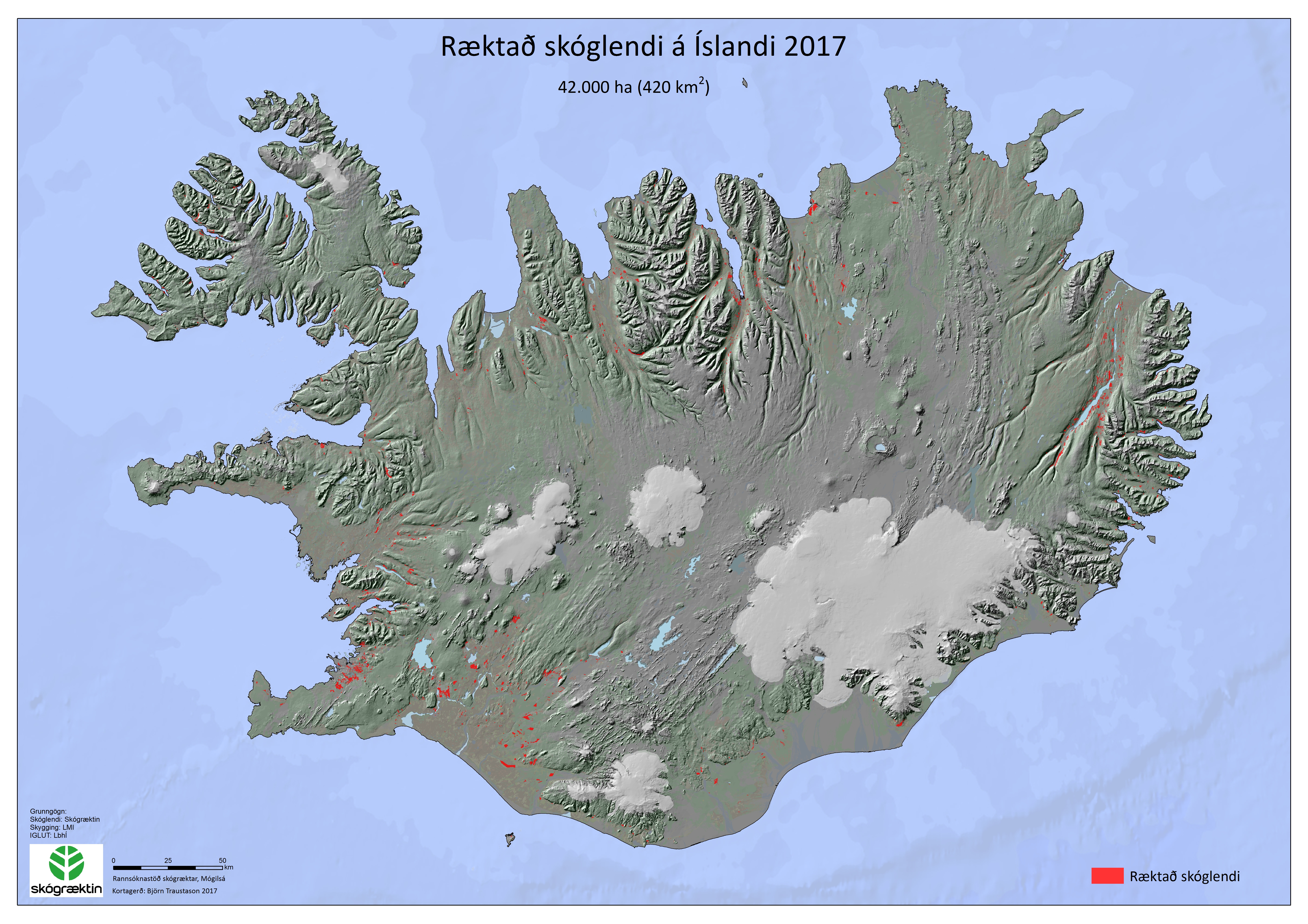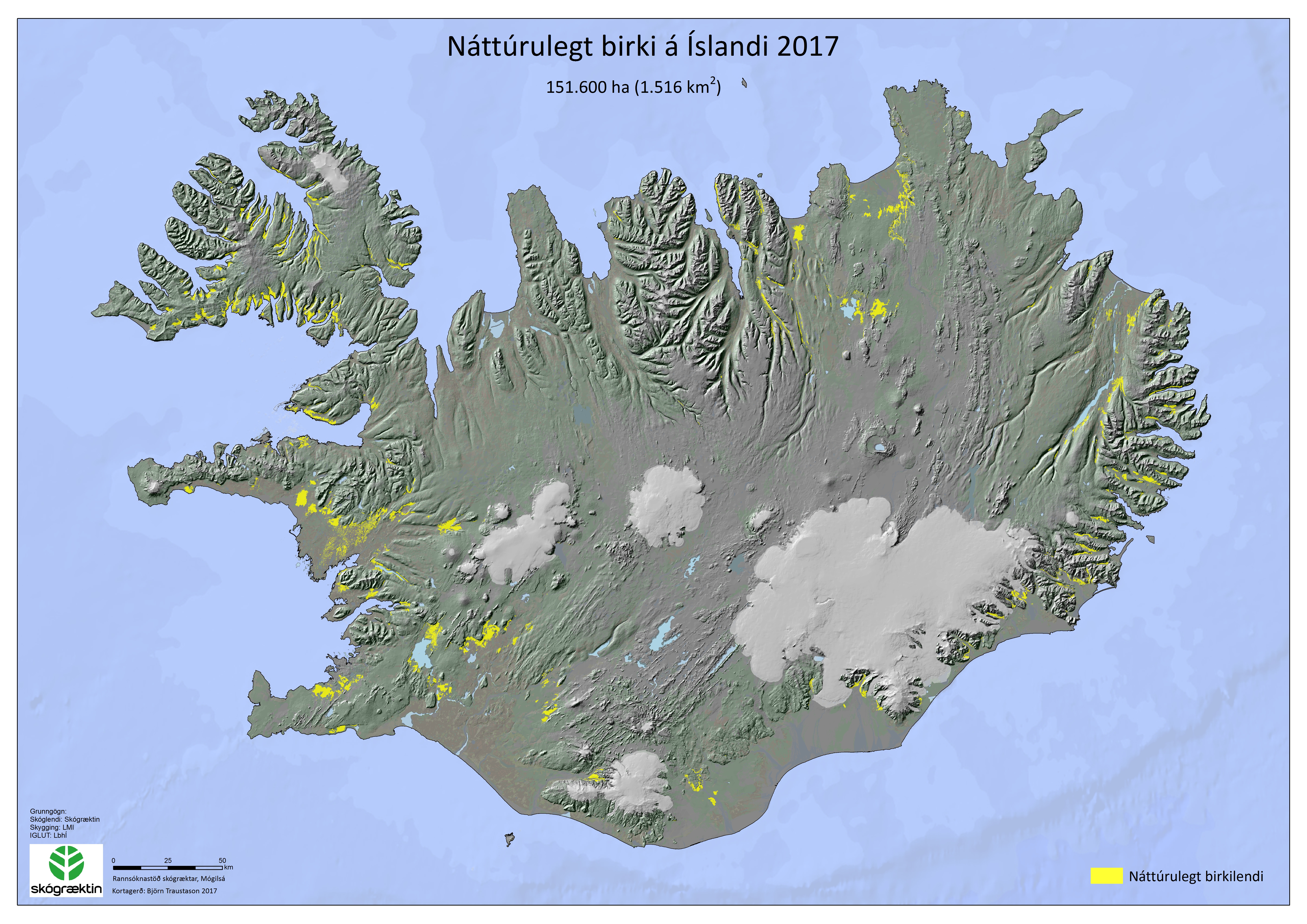 Kort yfir skóglendi á Íslandi eru unnin upp úr landfræðilegum gagnagrunni sem vistaður er hjá rannsóknasviði Skógræktarinnar. Hér er hægt að hlaða niður þrenns konar kortum, í fyrsta lagi korti sem sýnir allt skóglendi á Íslandi, í öðru lagi korti sem sýnir ræktað skóglendi og í þriðja lagi korti sem sýnir náttúrulegt birki.