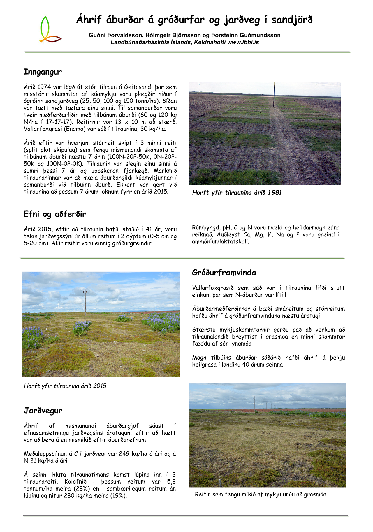 Áhrif áburðar á gróðurfar og jarðveg í sandjörð