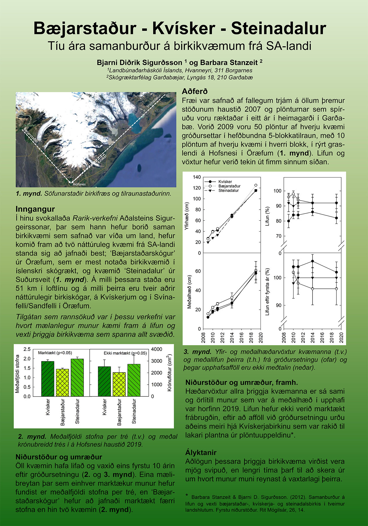 Bæjarstaður Kvísker Steinadalur – Tíu ára samanburður á birkikvæmum frá SA-landi