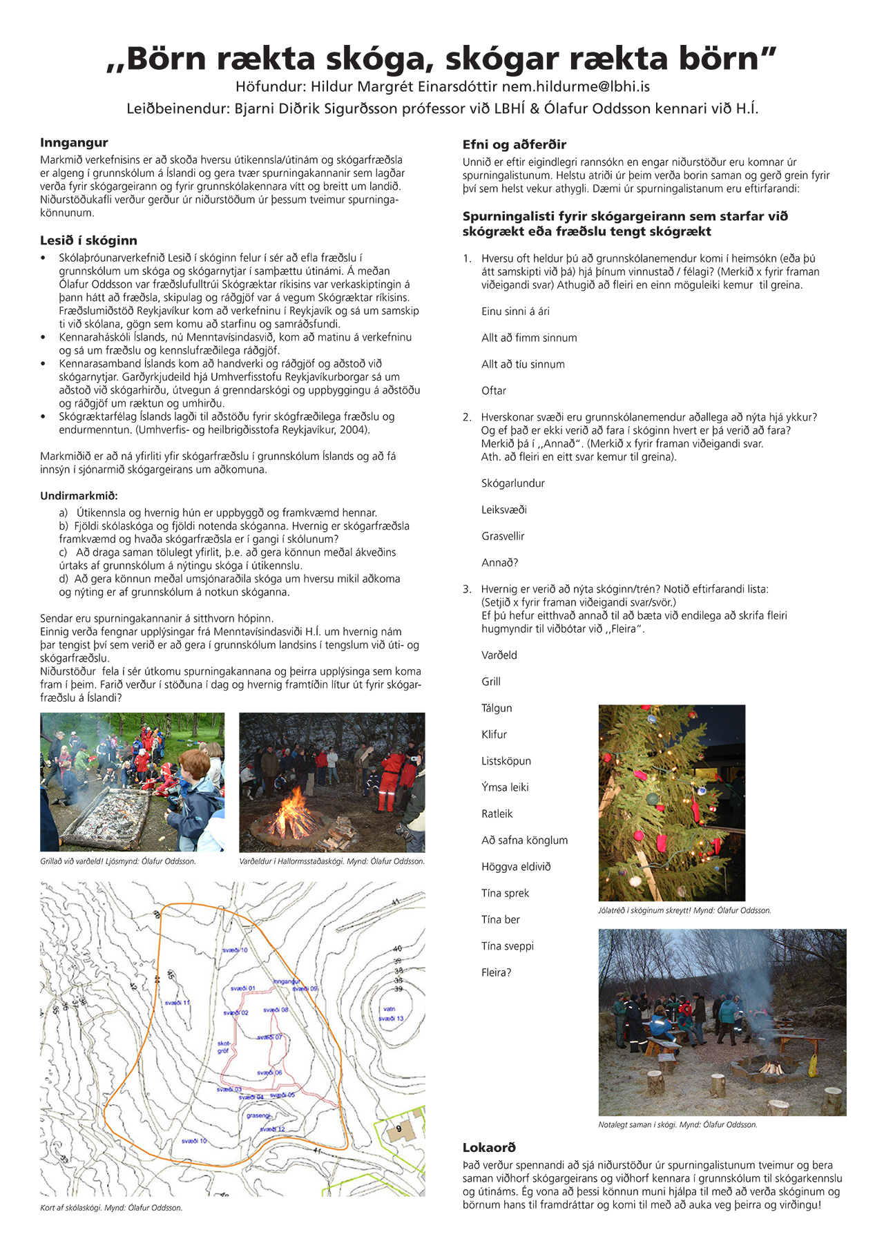 Einnig verða fengnar upplýsingar frá menntavísindasviði H.Í. um hvernig nám þar tengist því sem verið er að gera í grunnskólum landsins í tengslum við úti- og skógarfræðslu.