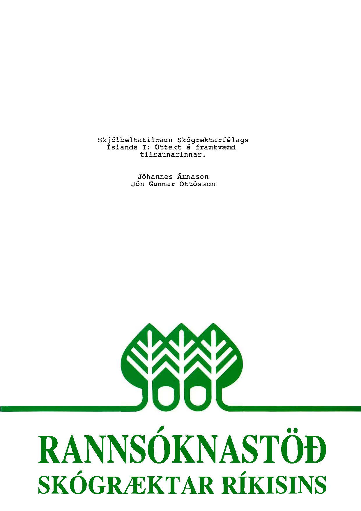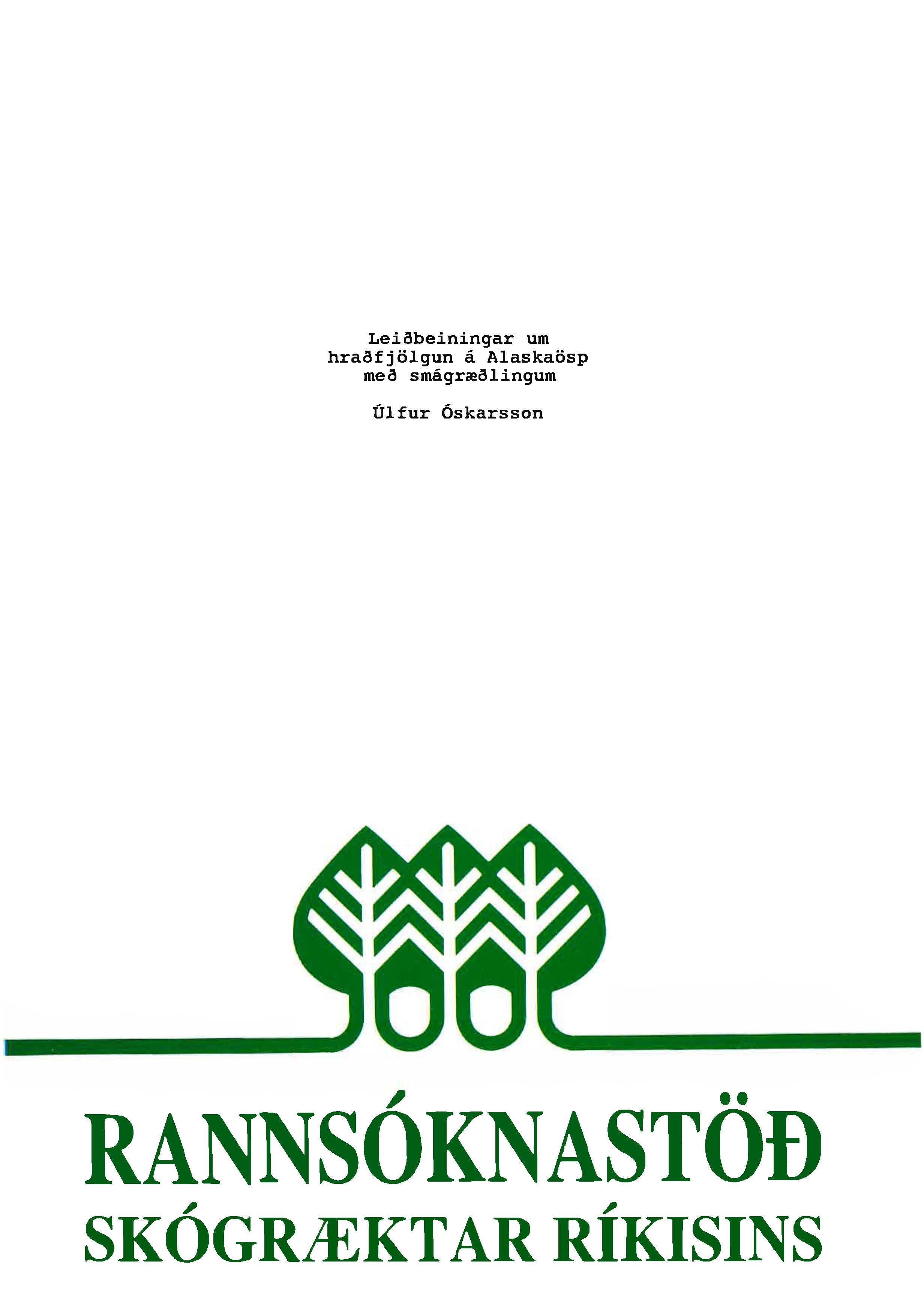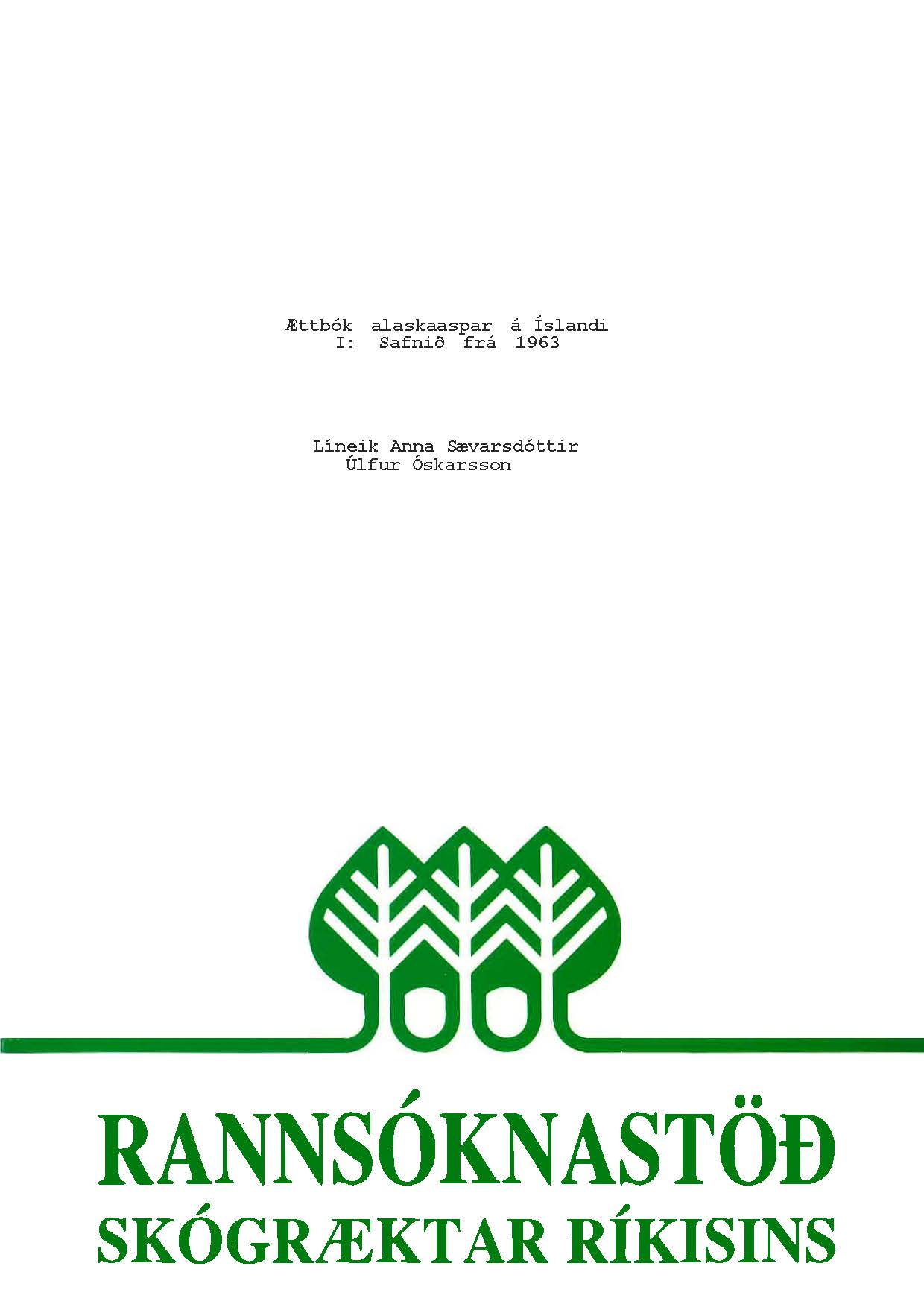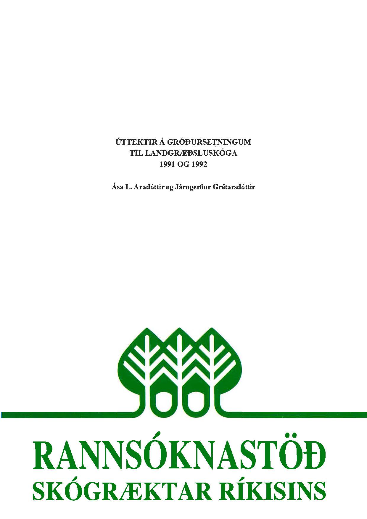 Líneik Anna Sævarsdóttir og Úlfur Óskarsson (Fjölrit Rannsóknastöðvar Skógræktar ríkisins 3) maí 1992