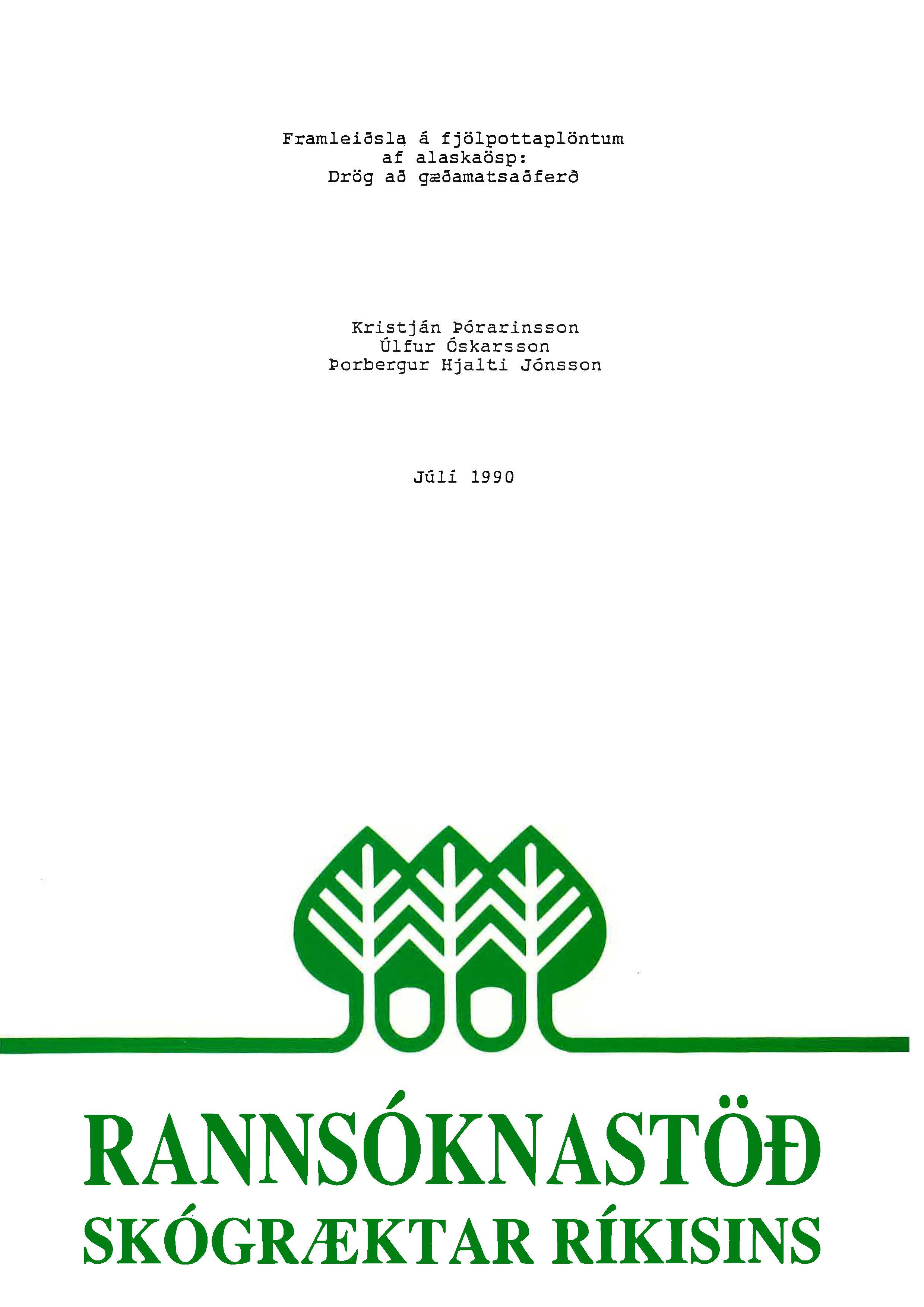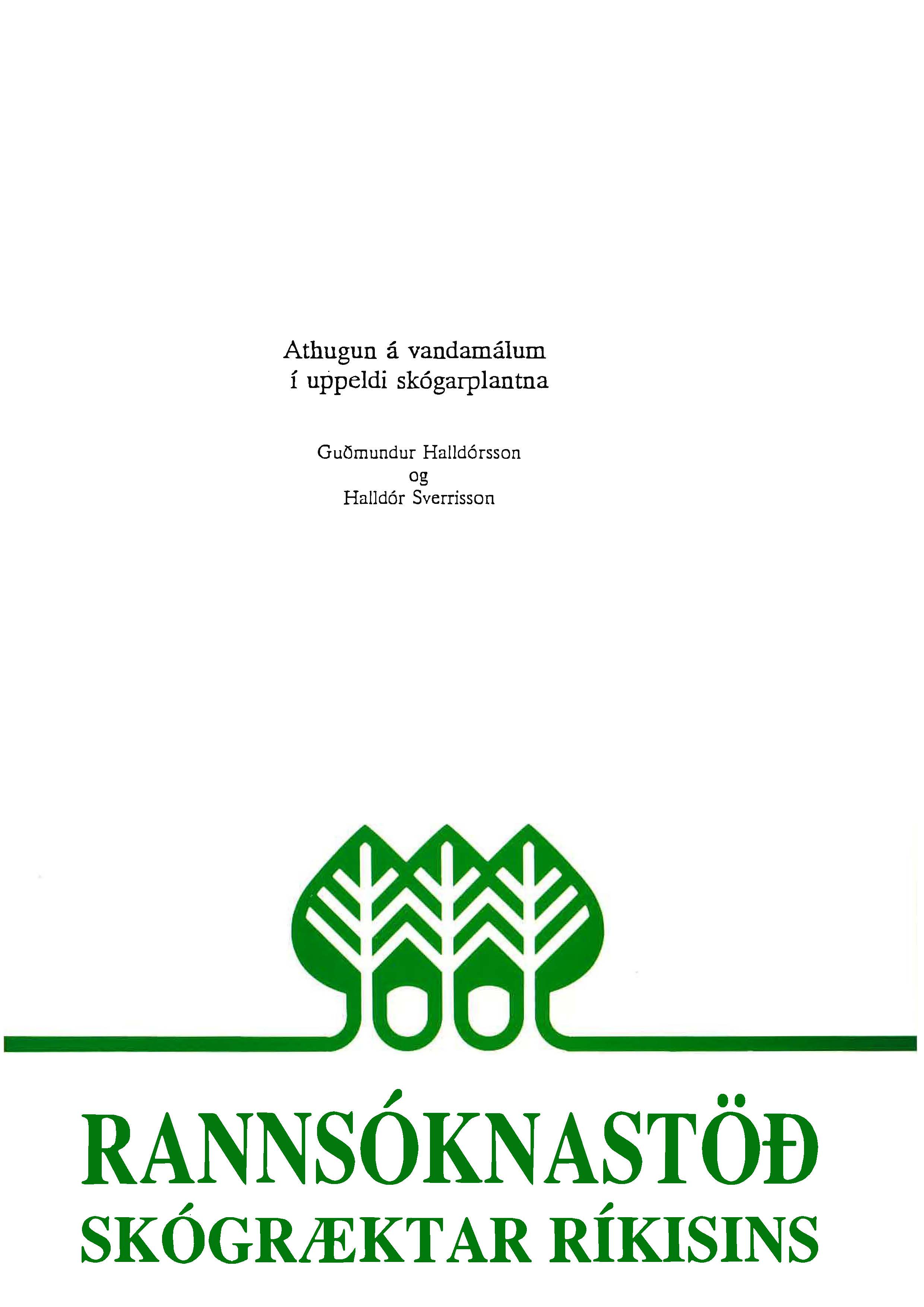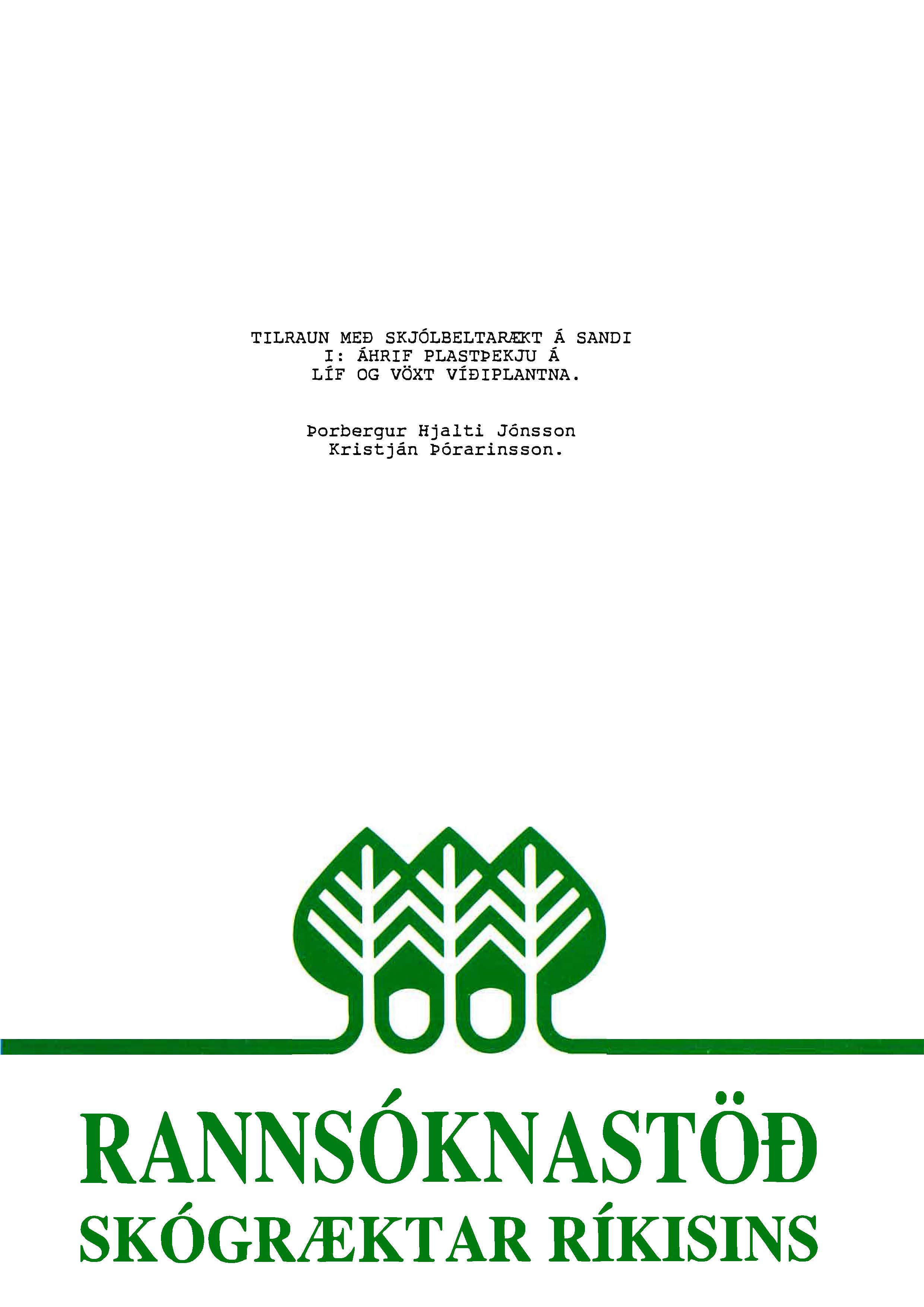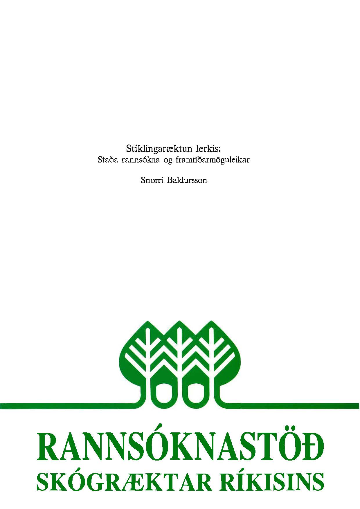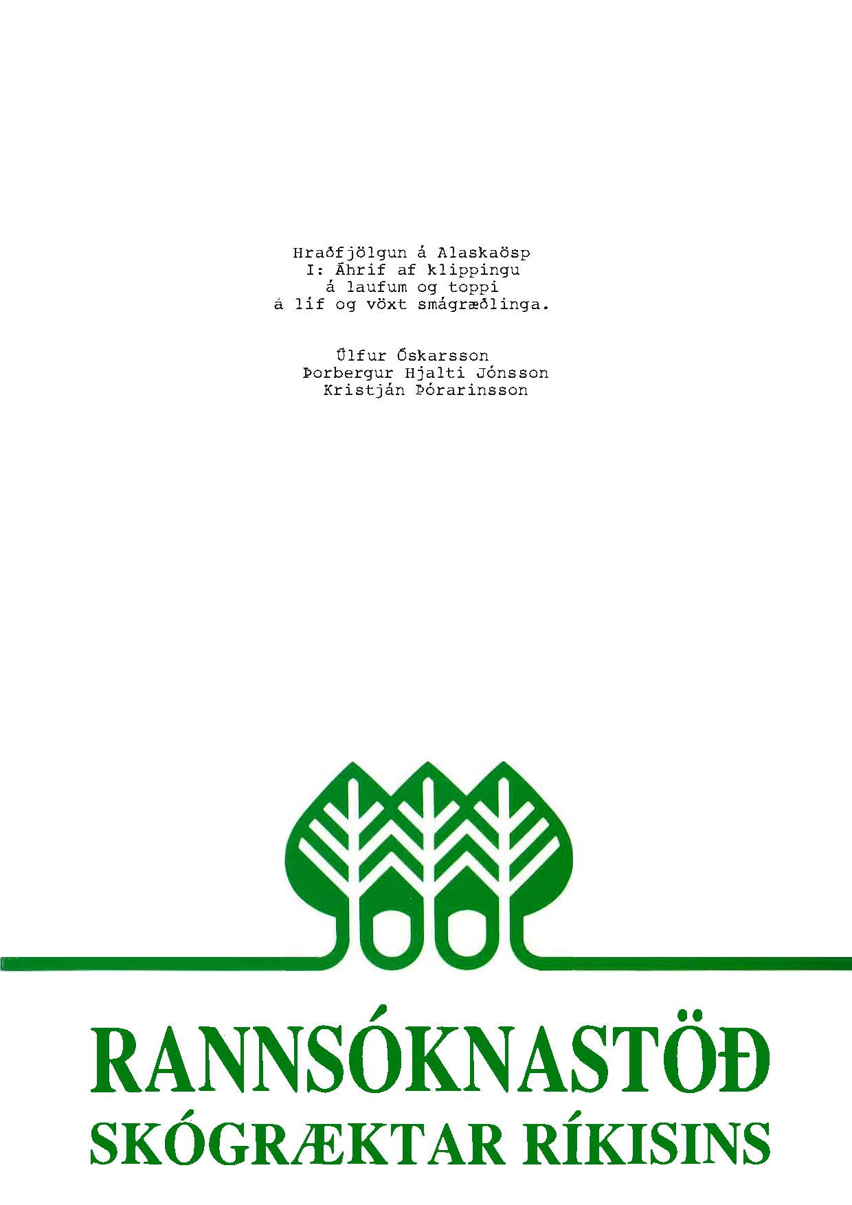 Líneik Anna Sævarsdóttir og Úlfur Óskarsson (Fjölrit Rannsóknastöðvar Skógræktar ríkisins 3) maí 1992