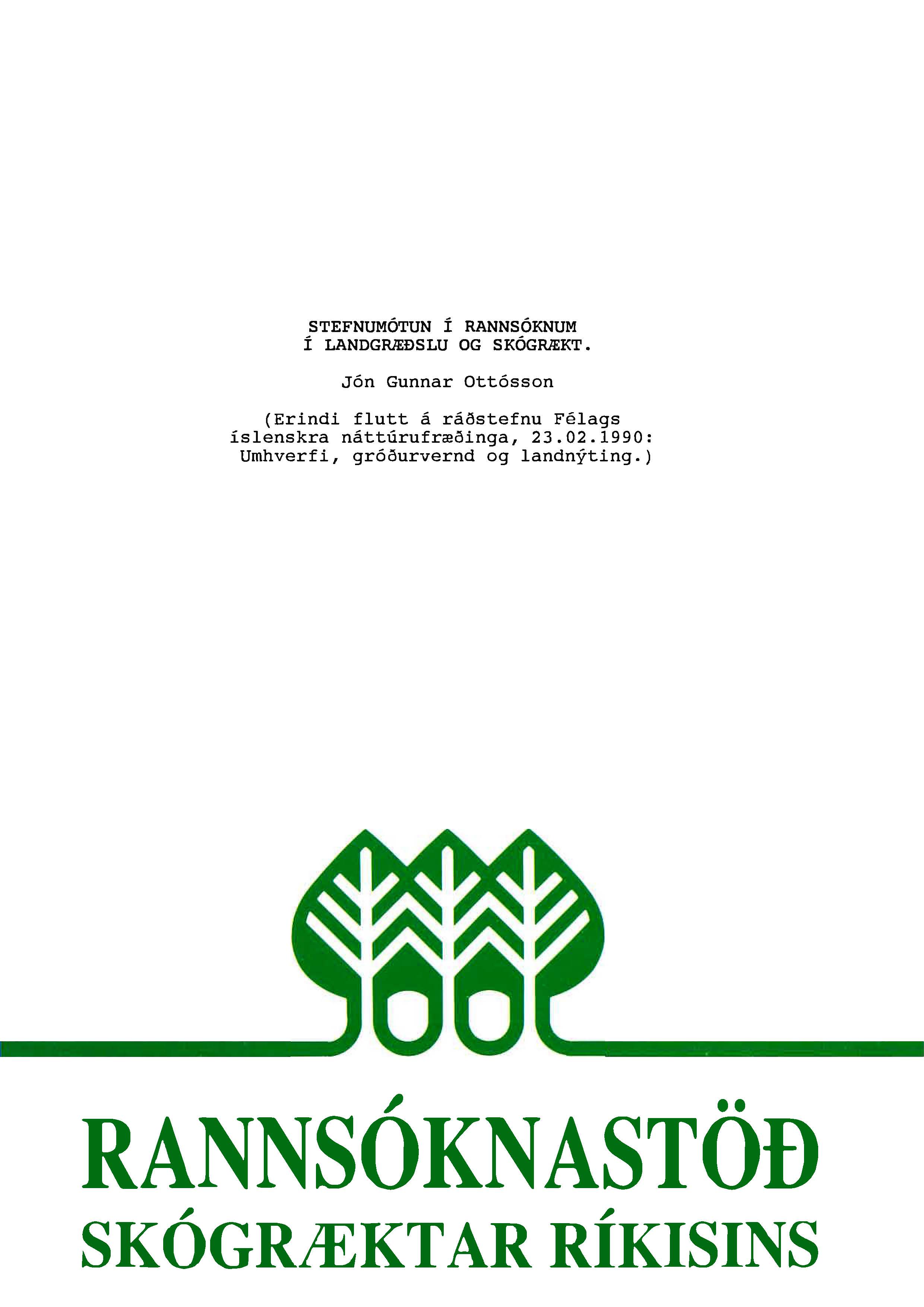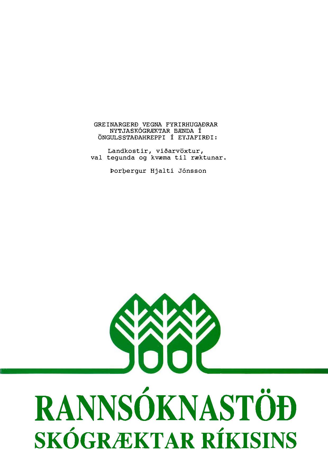 (Fjölrit Rannsóknastöðvar Skógræktar ríkisins 2) mars 1992