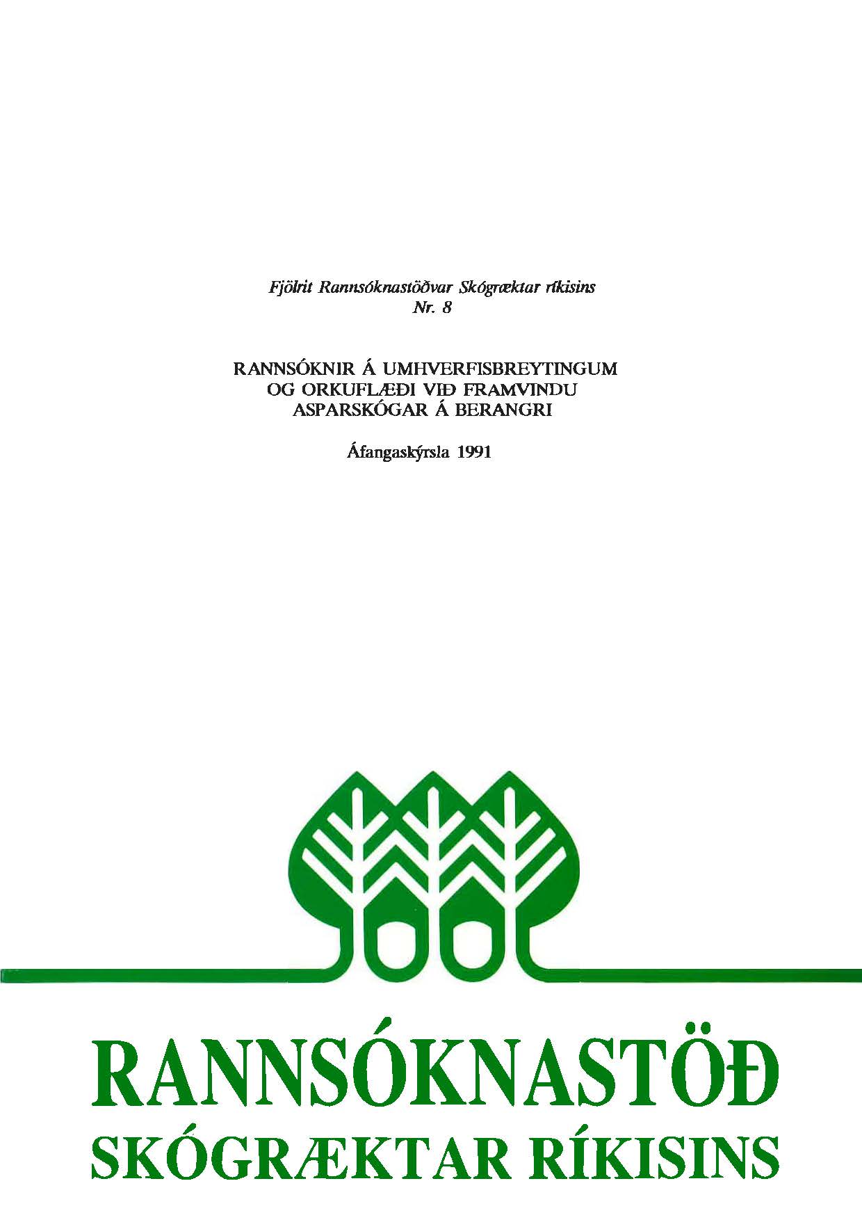 (Fjölrit Rannsóknastöðvar Skógræktar ríkisins 1) janúar 1992