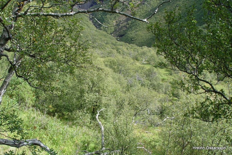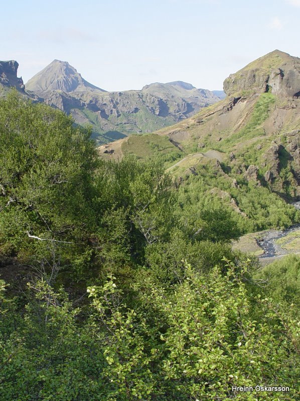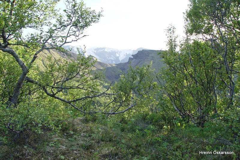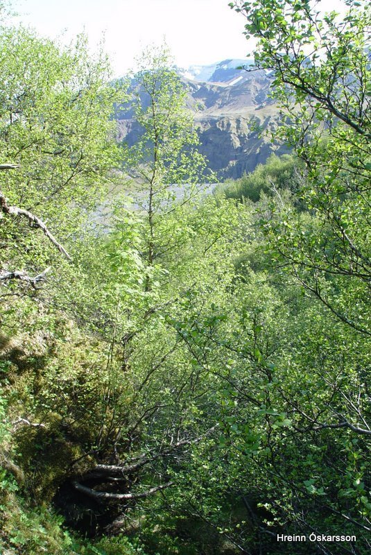 Fyrir einni öld var skógurinn á Þórsmörk kominn að fótum fram og ekkert blasti við nema eyðing hans. Verndar- og uppbyggingarstarf Skógræktarinnar hefur leitt til þess að nú hefur birkið breiðst mikið út, rof er ekki lengur vandamál og landið er áfram í framför þrátt fyrir mikla fjölgun ferðafólks. Ljósmynd: Pétur Halldórsson