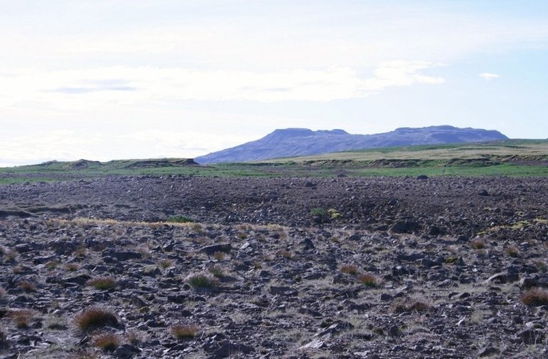 Ekki vantar grjótið á Haukadalsheiði. Í fjarska sést hversu þykk jarðvegshulan var