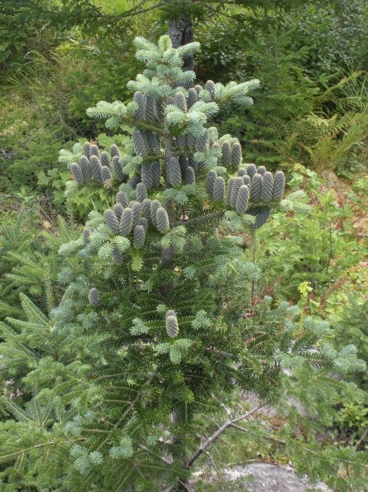 Mikil könglamyndun á ungum, ágræddum balsamþin.