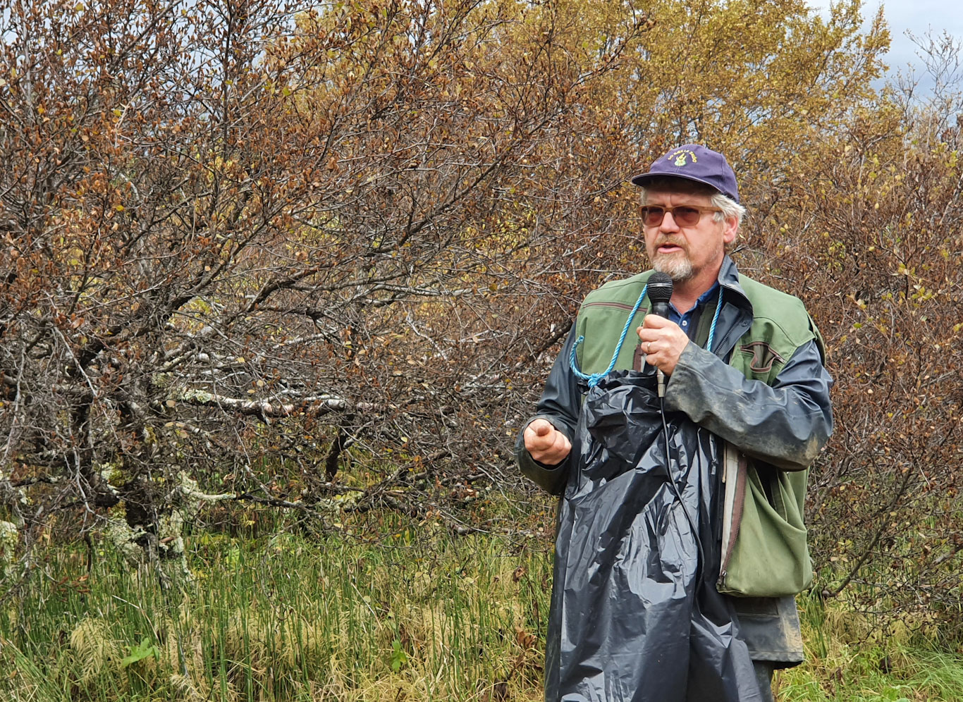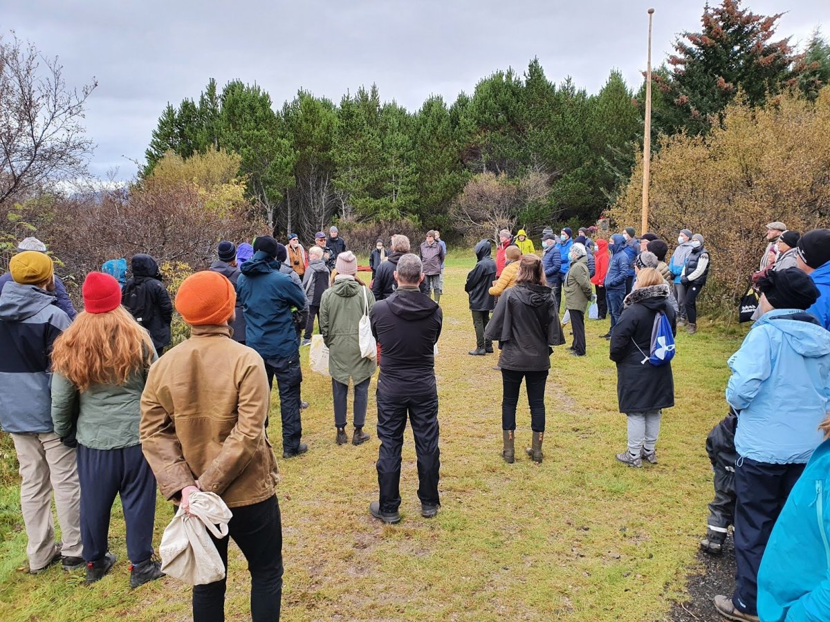 Aðalsteinn talar við hópinn í Heiðmörk. Ljósmynd: Skógræktarfélag ReykjavíkurAðalsteinn leiðbeindi fólki einkum um söfnun köngla af greni og furu en einnig um söfnun birkifræja. Hann segist hafa fundið fyrir miklum áhuga meðal þátttakenda sem spurðu ýmissa spurninga og vildu sumir taka ærlega til hendinni við sáningu á trjáfræi til útbreiðslu á skóglendi í landinu.