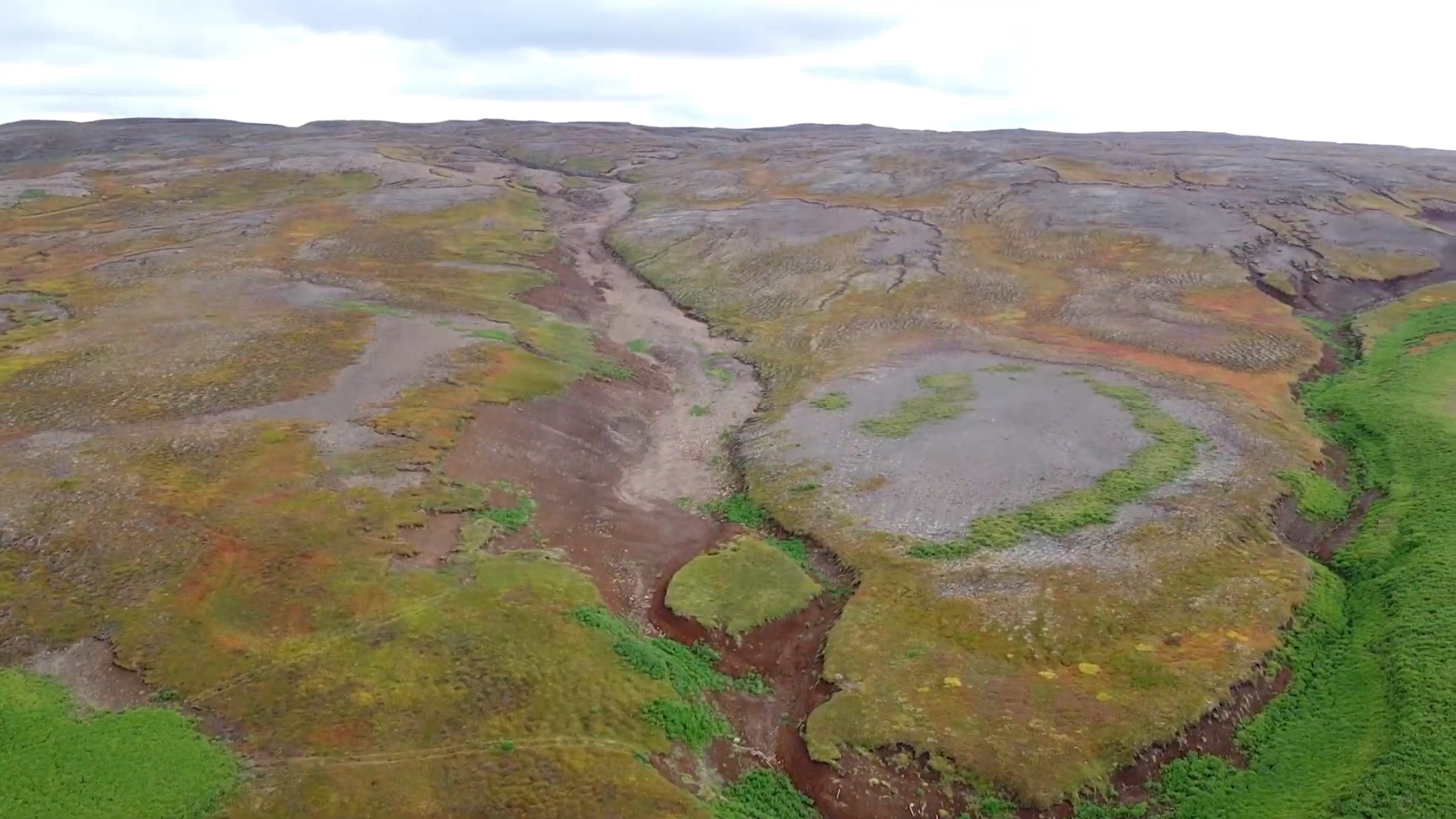 Séð af Grásteinsheiði til Húsavíkur og Húsavíkurfjalls. Í forgrunni er svæði sem sáð var í lúpínu og gróðursett birki ekki löngu síðar. Þarna er að myndast birkiskógavistkerfi með fjölbreyttum tegundum, til dæmis loðvíði sem annars sést ekki á svæðinu. Skjámynd úr myndbandinu