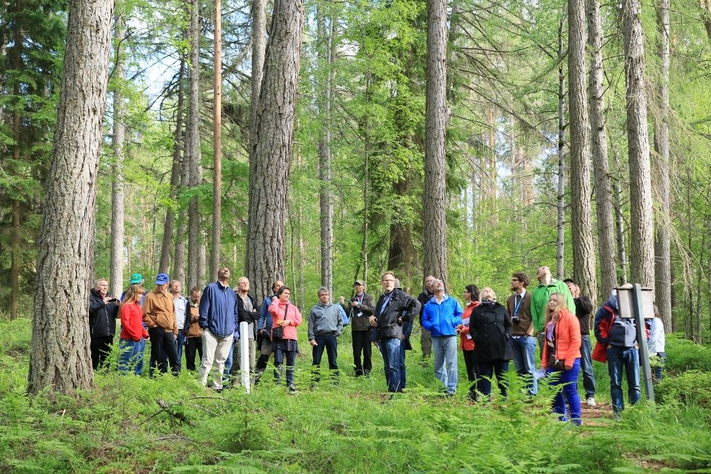 Skógvísindafólk í skoðunarferð um finnskan skóg í júní 2016. Mynd: Pétur Halldórsson