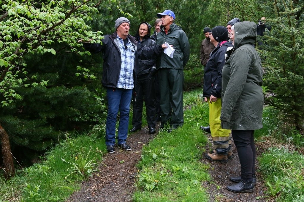 Skógur er tilbúin skólastofa þar sem læra má um lífið og tilveruna. Hér ræðir Ólafur Oddsson við þátttakendur á undirbúningsnámskeiði í skógarfræðslu sem haldið var í lok maí 2017 í Ólaskógi í Kjós.
