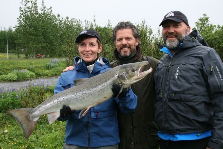Hjónin veiddu vel í Elliðaánum í gærmorgun ásamt Ásgeiri Heiðari leiðsögumanni sem leiðbeindi þeim við veiðarnar. Þau fengu hvort sinn laxinn og voru það hvort tveggja maríulaxar. Lax Karólínu var sérdeilis glæsilegur, segir á vef Reykjavíkurborgar, 87 sm hængur sem vó um 14 pund. Dóttir þeirra Elísabet fékk einnig að renna fyrir fisk og fékk pattaralegan maríulax. Öll voru þau kampakát með veiðina enda í fyrsta sinn að veiða lax. Borgarstjóri renndi síðan fyrir lax í ánum og fékk tvo nýgengna smálaxa. Átta laxar voru komnir á land fyrir kl. 10. Að sögn Árna Friðleifssonar, formanns Stangaveiðifélags Reykjavíkur sem hefur haft árnar á leigu frá Reykjavíkurborg frá 1939, fer laxveiðin í Elliðaánum því einkar vel af stað þetta árið, segir loks í fréttinni á vef Reykjavíkurborgar.