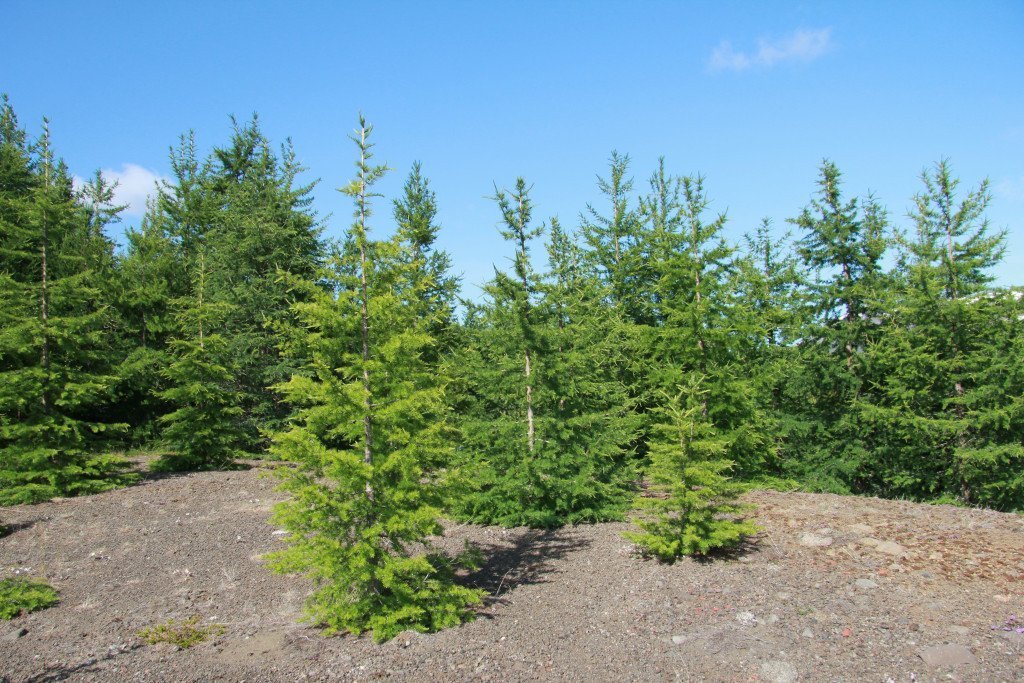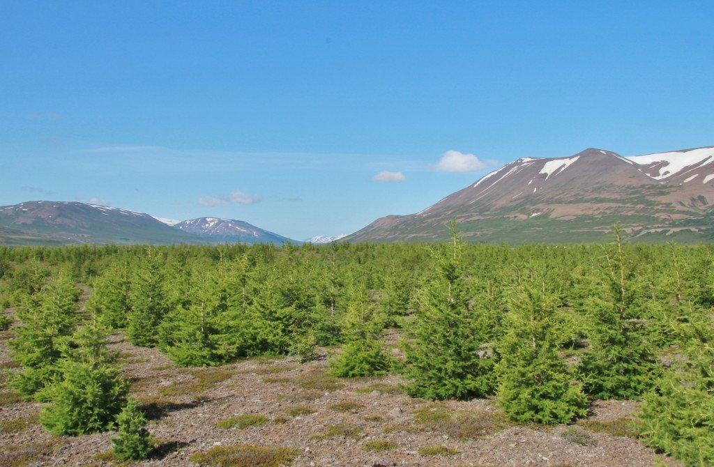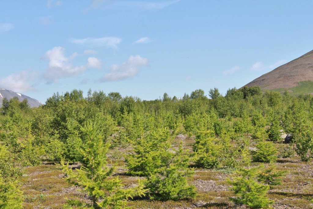 Rússalerki hentar sérlega vel til skógræktar á rýru landi, einkum á Norður- og Austurlandi. Bregðast verður við skorti á lerkifræi næstu árin með breyttu tegundavali þar sem það er mögulegt til að spara það lerki sem í boði verður. Ljósmynd: Pétur Halldórsson