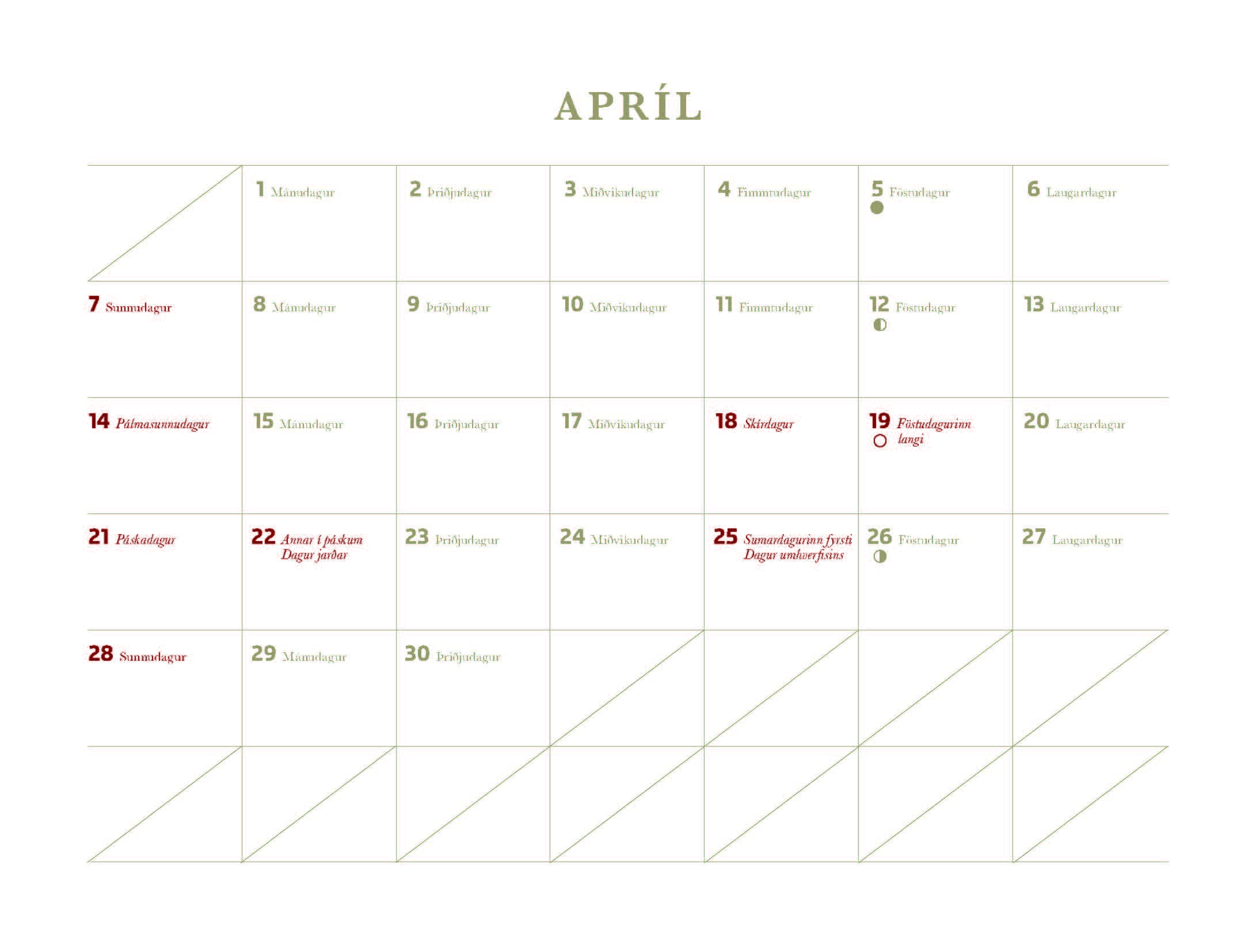 Á dagatalinu eru upplýsingar um helstu tyllidaga, meðal annars daga sem snerta skógrækt og náttúruverndKrossnefur hefur sérhannaðan gogg til að ná fræjum úr könglum barrtrjáa og jafnvel þótt fjöldi tegundarinnar í landinu sé ekki mikill enn sem komið er sjást hér ungar æ oftar. Tegundin hefur reynt varp í skógarlundum víða um land og eftir því sem barrskógar vaxa upp aukast líkur á því að krossnefurinn nemi hér varanlega land og taki að fjölga sér að ráði.
