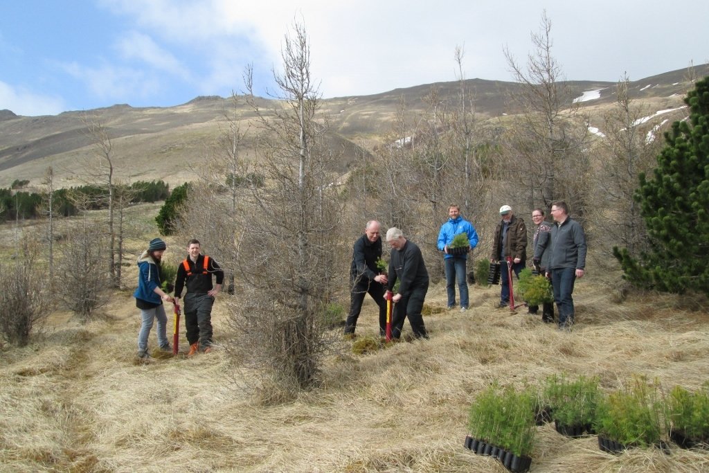 Degli gróðursett á Mógilsá á degi jarðar 2015. Mynd: Aðalsteinn Sigurgeirsson.