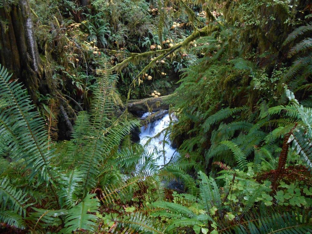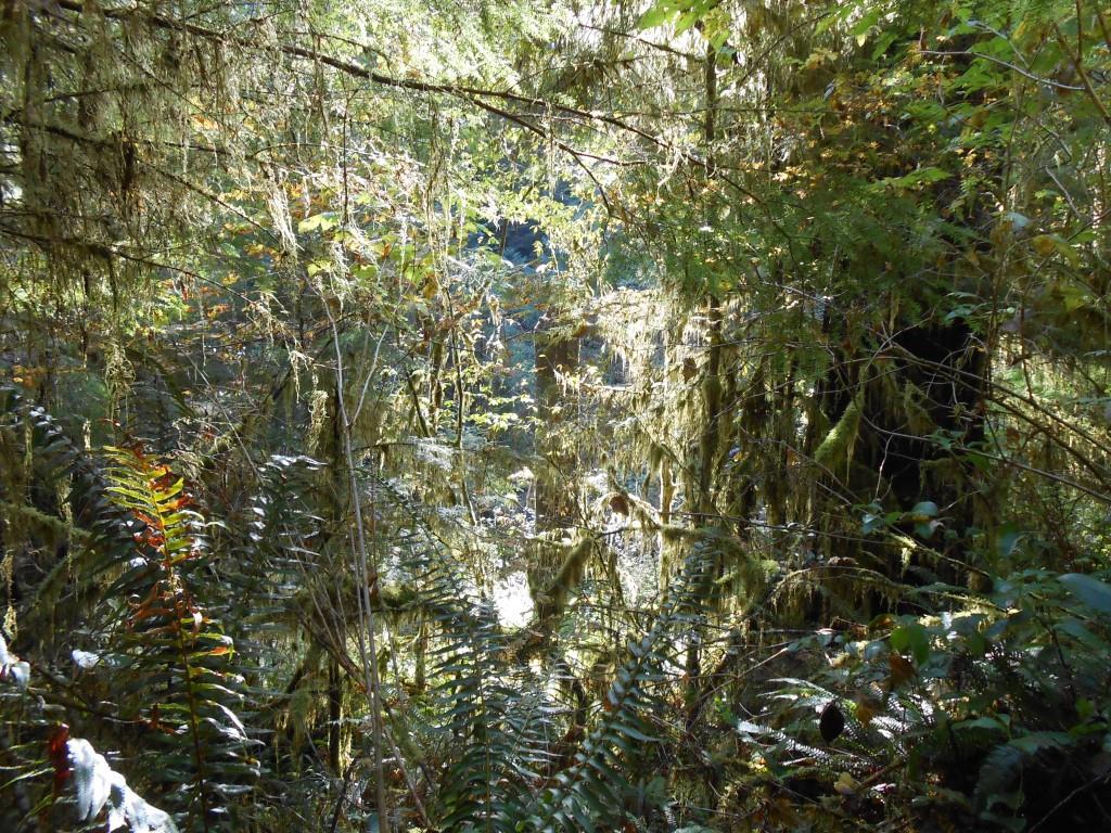 Mannhæðarháir burknar í degliregnskógiÓlympíuskagi í Washington-ríki er þekktur fyrir að vera eitt úrkomusamasta svæði í Bandaríkjunum. Meðalúrkoma ársins er um 3.000 mm þar sem mest rignir, en það er svipað og í Kvískerjum í Öræfum. Fáir búa þarna, e.t.v. vegna orðrómsins um að þar rigni svo mikið. Á svæðinu er hins vegar bæði stór þjóðgarður og miklir þjóðskógar en utan þeirra byggist atvinna á skógarnytjum og fiskveiðum. Þarna var því fámennt þegar íslenskt skógræktarfólk heimsótti regnskógana í Quinault-dalnum, á vestanverðum skaganum, á gullfallegum sólskinsdegi í október 2013. Þetta var jafnframt síðasta svæðið sem hópurinn heimsótti áður en farið var aftur til Seattle og svo heim.