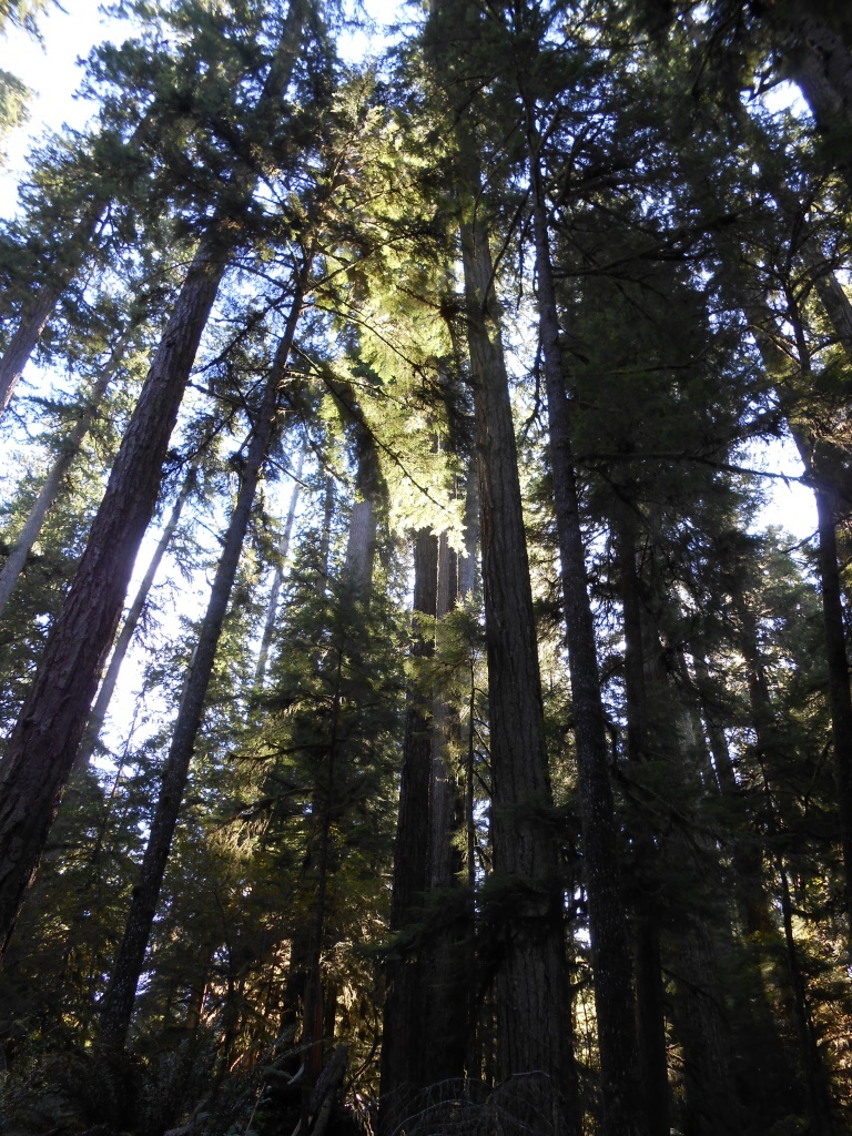Í þessum regnskógum ræður degli (Pseudotsuga menziesii) ríkjum og nær þar um 80 metra hæð. Undirgróðurinn mynda svo 40 metra háar marþallir og risalífviðir og í skógarbotninum 5 metra hátt bláberjalyng og mannhæðar háir burknar.