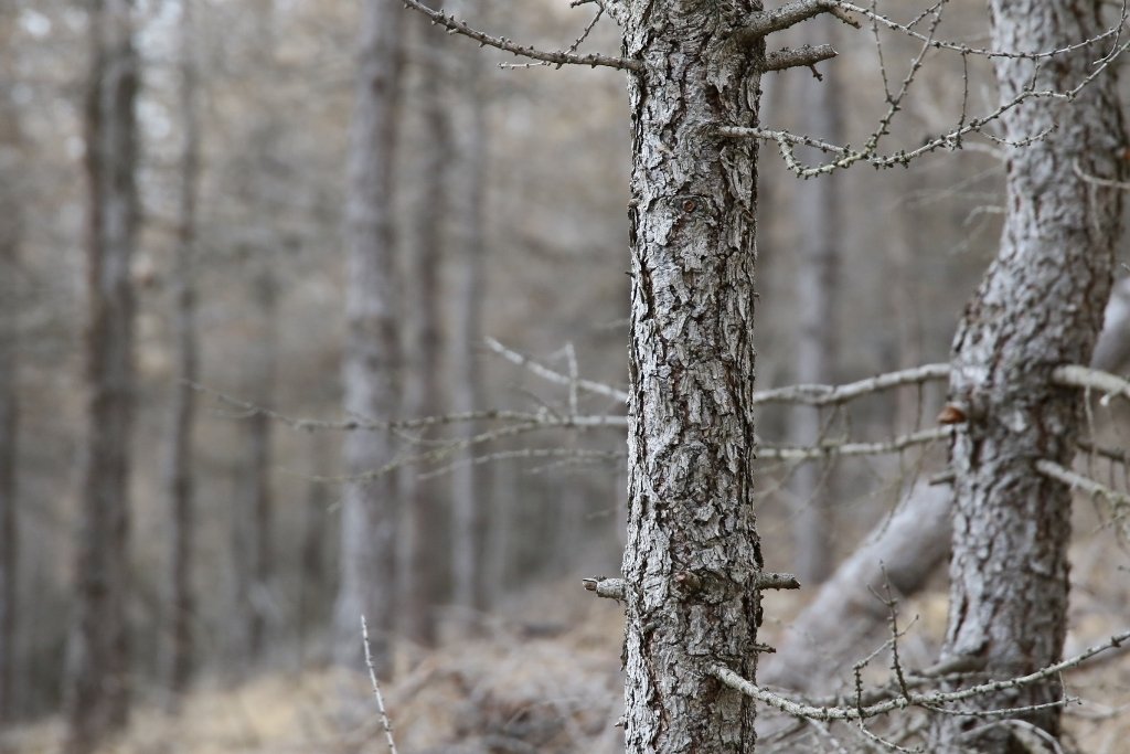 Börkurinn á lerkitrjám brennur illa og veitir því vörn gegn eldi. Rækta má nokkurs konar eldvegg með lerki til að draga úr hættunni á að eldur breiðist út. Mynd: Pétur Halldórsson