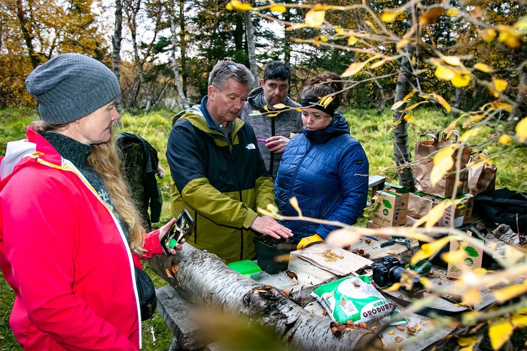 Viðburðurinn í Garðsárreit tókst mjög vel í góðu haustveðri og haustlitir skörtuðu sínu fegursta í reitnum, ekki síst á birkinu sem var heiðgult og nóg af fræreklum á trjánum til að tína. Kristinn H. Þorsteinsson, verkefnastjóri fræsöfnunarátaksins, fræddi fólk um birki, söfnun á birkifræi, meðhöndlun á fræinu og sýndi líka hvernig sá má fræinu í potta og rækta eigin plöntur.