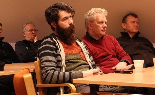 Íbyggnir fundargestir í Gömlu-Gróðrarstöðinni