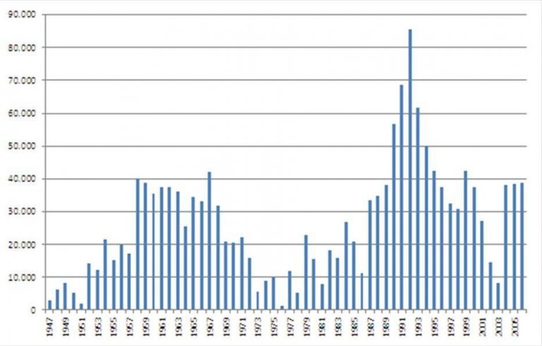 Hallgrímur brá upp línuriti sem sýndi gróðursetninguna frá árinu 1947 til 2006. Á því sést að mikið var gróðursett í bæjarland Akureyrar á 7. áratugnum, lítið um miðbik þess áttunda en gróðursetning náði svo hámarki upp úr 1990. Árið 1992 var metár þegar gróðursettar voru um 85.000 plöntur. Fram kom hins vegar hjá Hallgrími að gróðursetning hefði að mestu dottið niður við bankahrunið sem væri miður því nauðsynlegt væri að halda starfinu áfram. Nóg væri eftir af landrými sem skipulagt hefði verið til skógræktar.