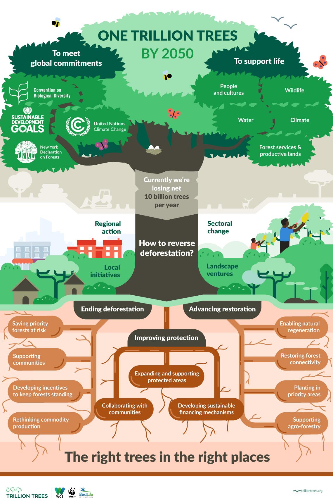 Þessar hugmyndir um stóraukna ræktun loftslagsskóga fengu byr í seglin í á árlegum fundi alþjóðlega efnahagsráðsins, World Economic Forum, sem nýlokið er í Davos í Sviss. Þar var hrundið af stað verkefninu Trillion Trees, alþjóðlegu átaki sem miðar að því að hvetja stjórnvöld, félagasamtök, fyrirtæki og einstaklinga til að græða land skógi og með því að hjálpa í baráttunni gegn hamfarahlýnun. Markmiðið er að gróðursett verði ein billjón trjáa, með öðrum orðum þúsund milljarðar.