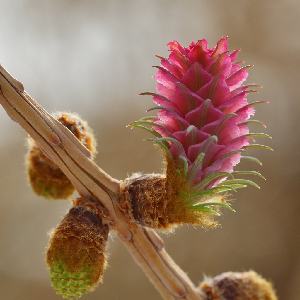 Karl- og kvenblóm á evrópulerki. Mynd: Pétur Halldórsson.
