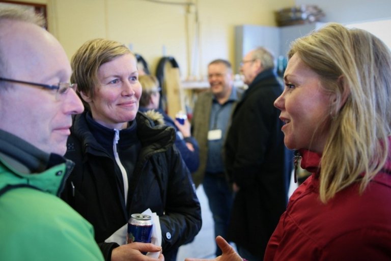 Tæki til skógarvinnu voru kynnt og hér er skeggrætt um kosti þeirra.