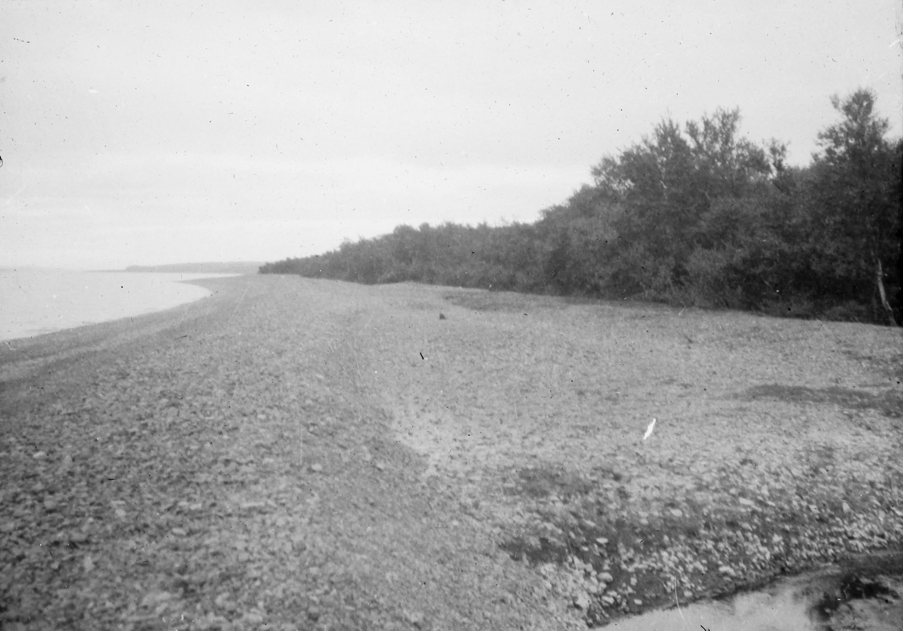 Fyrir vestan ána taka við roksandssléttur, sem liggja í breiðum beltum og melar á milli. Blæjalogn var á þangað til eg kom vestur fyrir Kverkfjallarana; þaðan sá eg að hryggir fóru að myndast á roksandssléttunum, og þegar eg kom þangað, var dimmt af sandfoki. Mjög hvast var samt ekki, svo á melunum á milli var ekkert sandfok. Mun þar ilt á ferð að vera í hvassviðri, eða ef til vill ómögulegt.