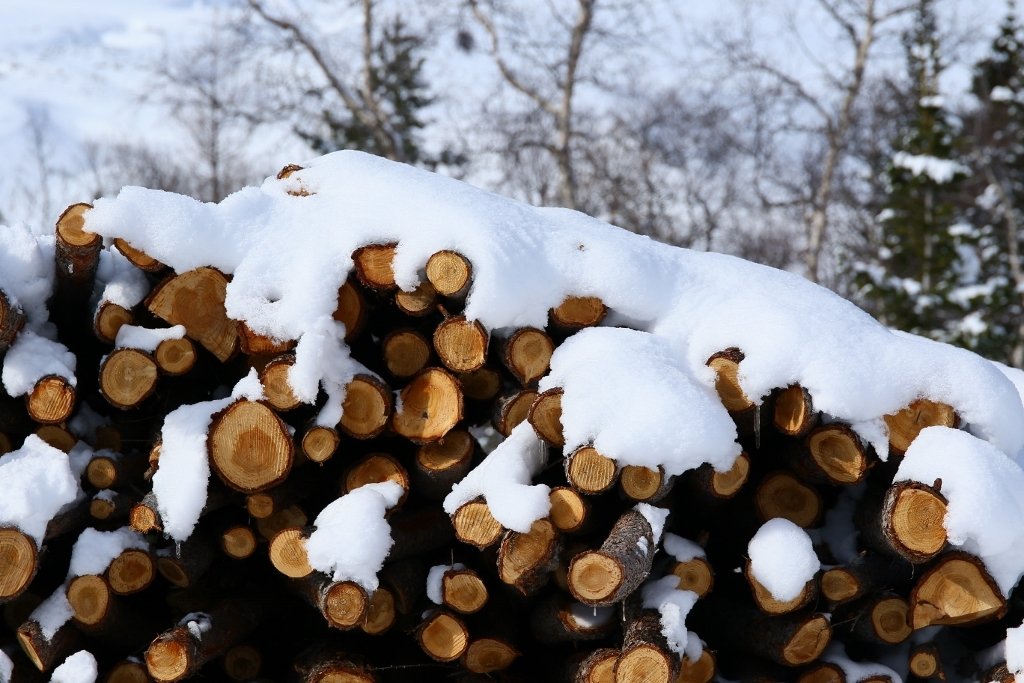 Viðarstafli að vetri. Mynd: Pétur Halldórsson.