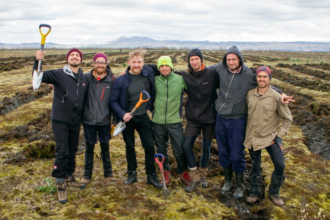 Fulltrúar Súrefnis ásamt gróðursetningarmönnum í Símonarskógi. Þríhyrnignur í baksýn. Ljósmynd af vef Súrefnis