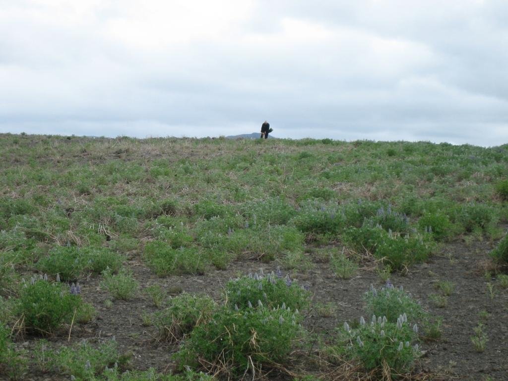Í ljós hefur komið að birki, lerki, stafafura og fleiri trjátegundir lifa ágætu lífi innanum lúpínuna á Hólasandi og verða birkiplönturnar sem austanfólk gróðursetti góð viðbót. Veður var líka hið ákjósanlegasta – skýjað, 10 stiga hiti og næg gola til að halda mýinu niðri að mestu. Svo fór að rigna þegar verið var að gróðursetja síðustu plöntuna.