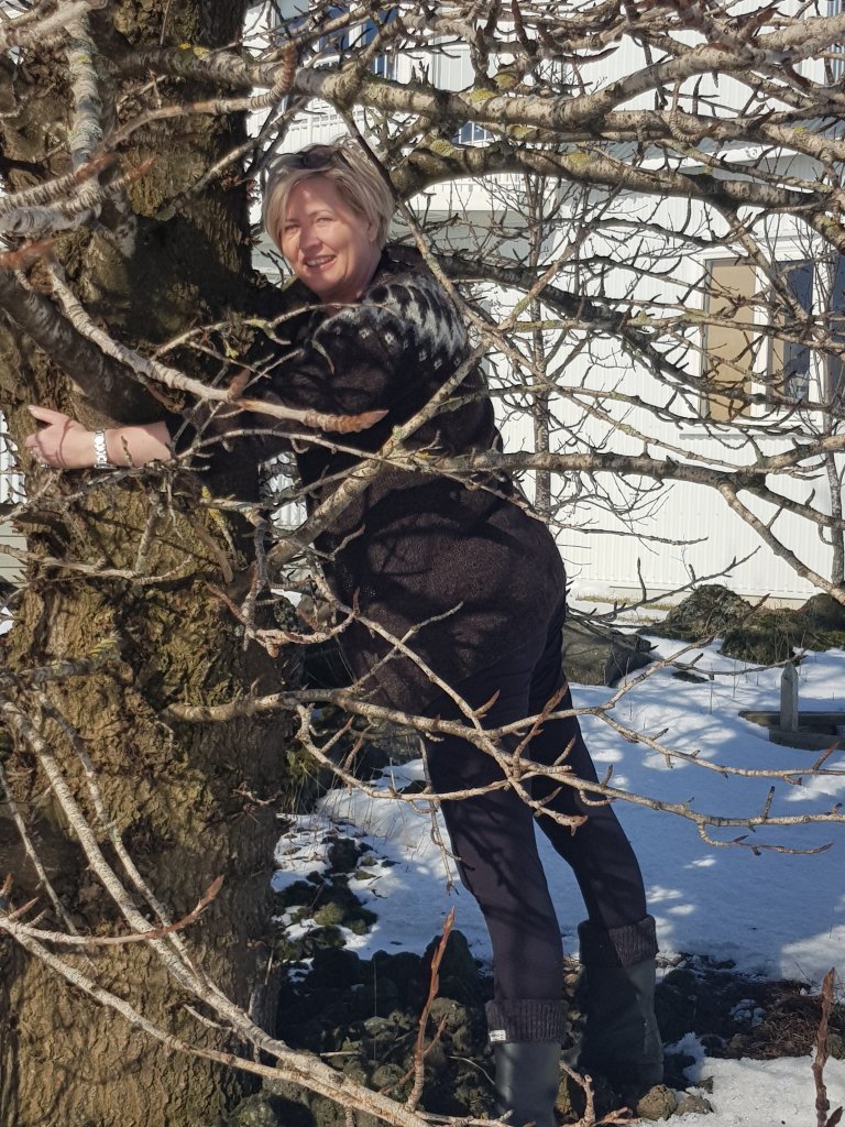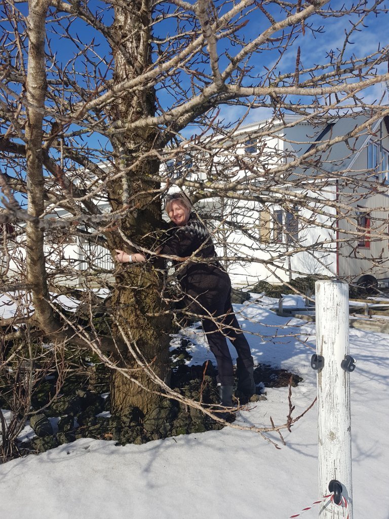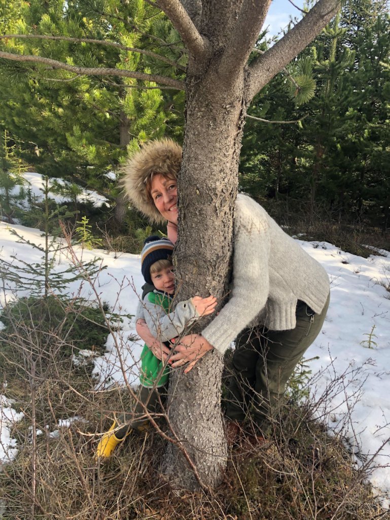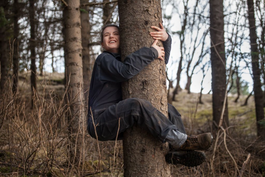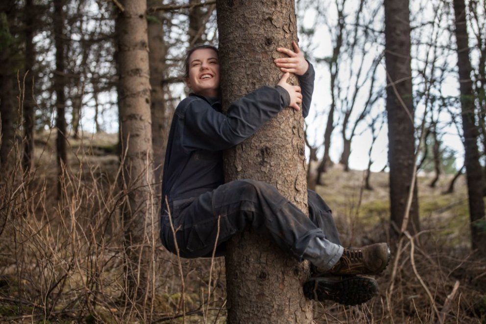 Lucile notaði líka tækifærið til að bæta í safn mynda af starfsfólki Skógræktarinnar, venslafólki og vinum að knúsa tré. Nóg er af myndarlegum sitkagrenitrjám í Fljótshlíðinni enda skilyrði óvíða betri fyrir tegundina.