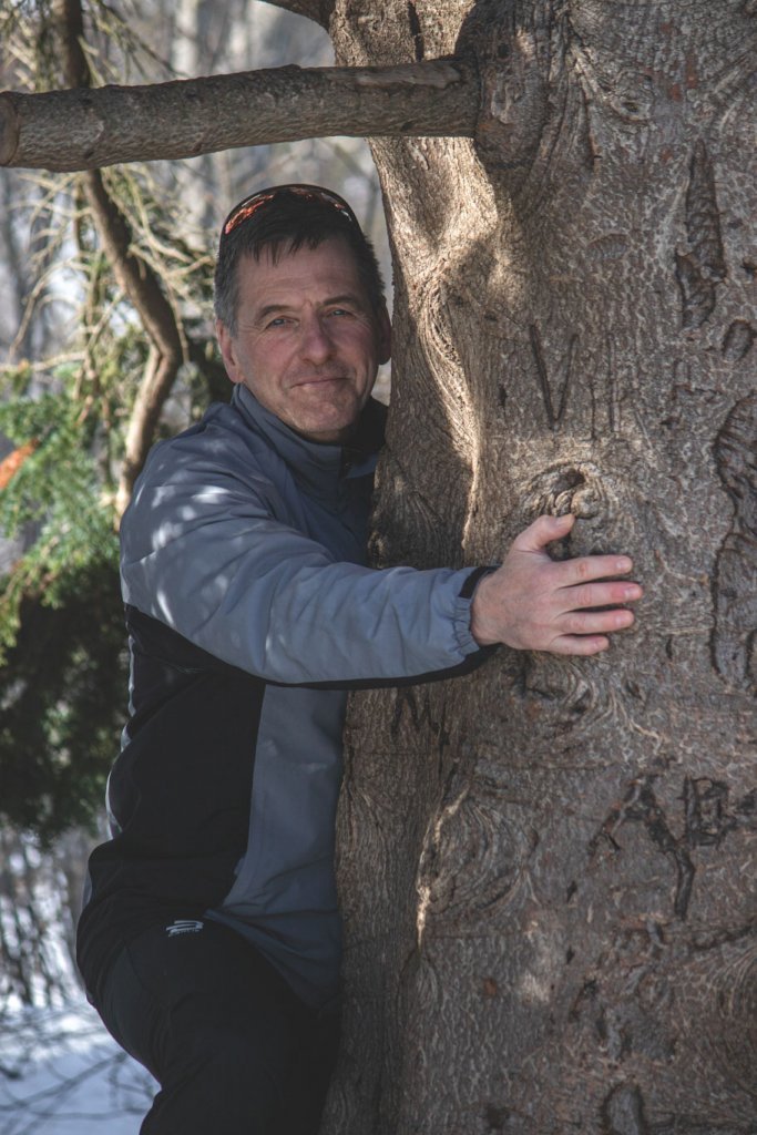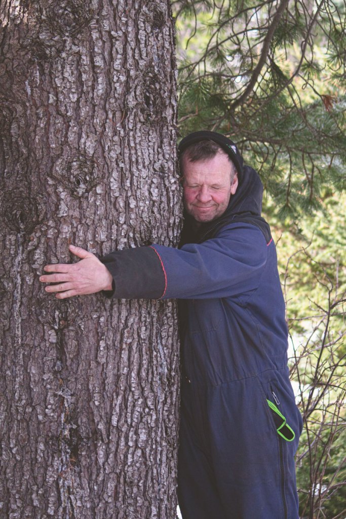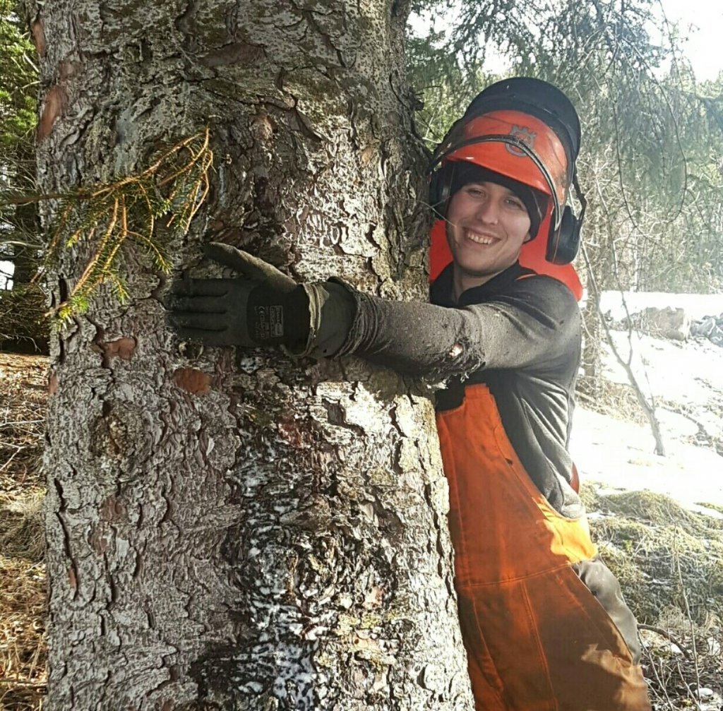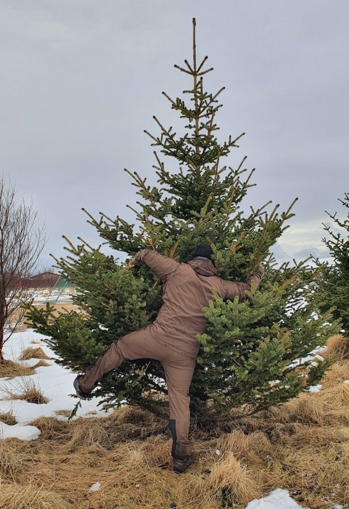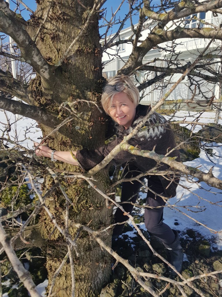 Lucile notaði líka tækifærið til að bæta í safn mynda af starfsfólki Skógræktarinnar, venslafólki og vinum að knúsa tré. Nóg er af myndarlegum sitkagrenitrjám í Fljótshlíðinni enda skilyrði óvíða betri fyrir tegundina.