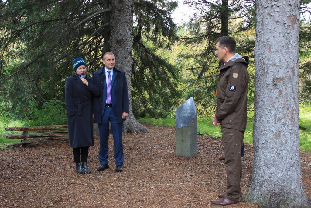 Í lokin var Guðna sýnd brjóstmynd af honum sem norskur listamaður sagaði út með keðjusög daginn fyrir forsetakosningarnar 2016. Aðeins er farið að sjá á brjóstmyndinni því sveppur hefur farið að vaxa í viðnum og setur nú mark sitt á verkið. Í frétt Sjónvarpsins frá heimsókninni heyrðust orð sem komu upp í huga forsetans þegar hann sá mynd sína skorna út í lerkibol.