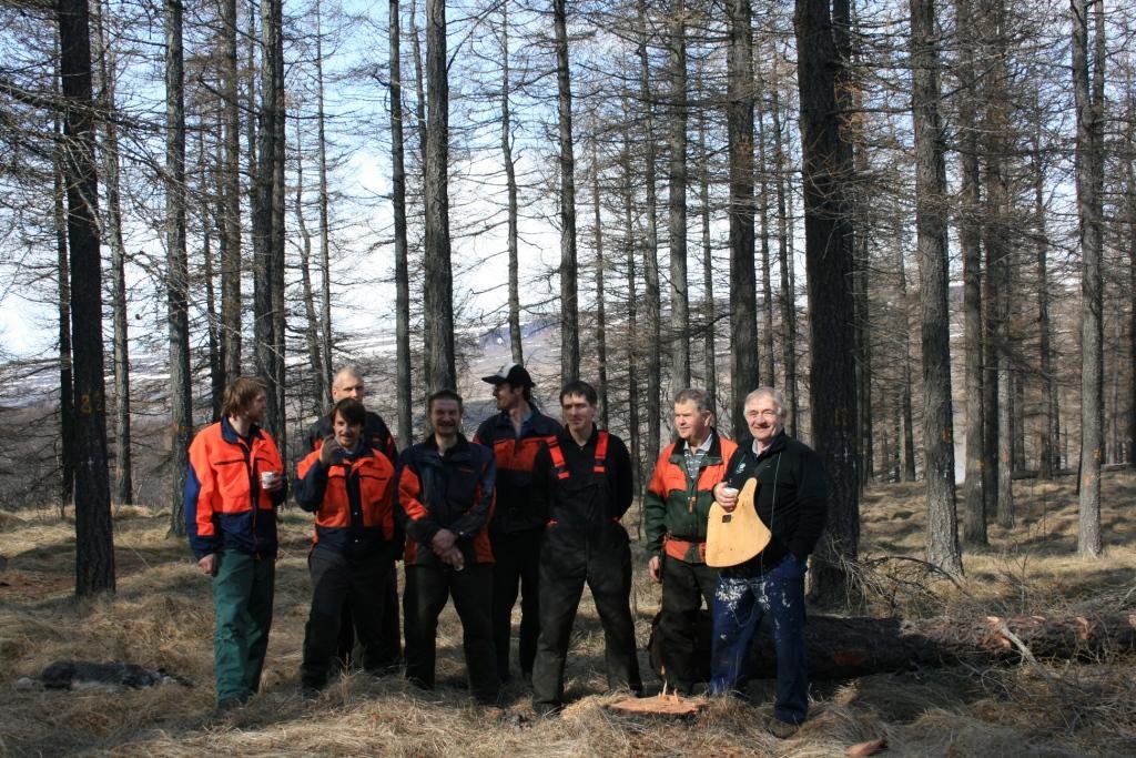 Þrír fyrrverandi skógarverðir í Hallormsstaðaskógi og núverandi skógarvörður voru meðal þeirra sem voru viðstaddir grisjunina. Þetta voru þeir Sigurður Blöndal, Þórarinn Benedikz, Jón Loftsson og núverandi skógarvörður, Þór Þorfinnsson.