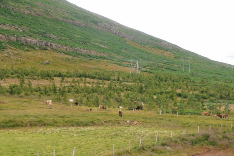 Þessa fyrstu daga sem kúnum á Höfða hefur verið beitt á skóginn er ekki að sjá neinar skemmdir á trjágróðri nema á alaskavíði og selju eins og gert hafði verið ráð fyrir.