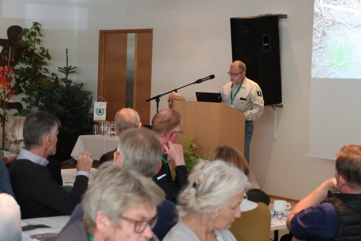 Skógræktarstjóri flytur ávarp sitt á aðalfundi Skógræktarfélags Íslands 2019 í Kópavogi. Ljósmynd: Ragnhildur Freysteinsdóttir
