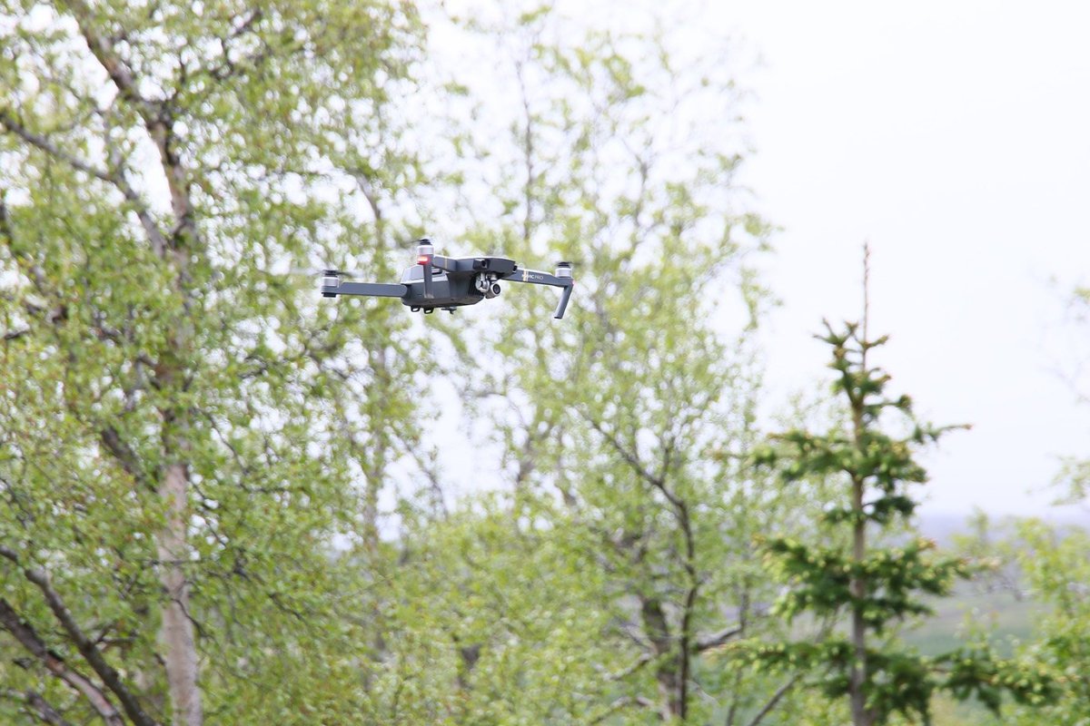 Dróni skoðar skóg. Ljósmynd: Pétur Halldórsson