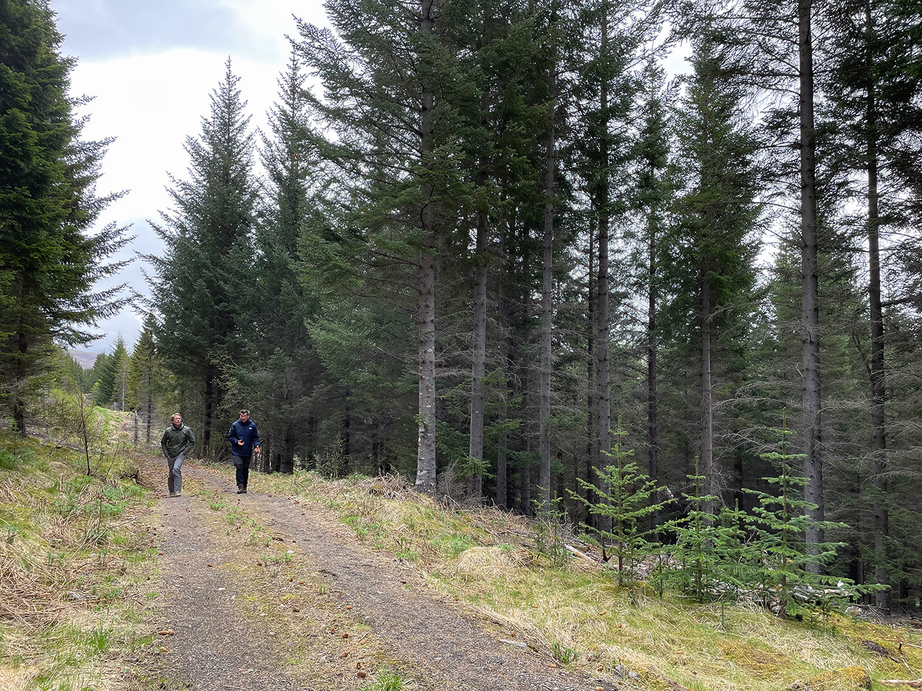 Reinier Bulstra og Koen Kramer skoða mikinn „kolefnisskóg“ á Stálpastöðum. Ljósmynd: Þröstur EysteinssonDagana 23.-25. maí heimsóttu fjórir fulltrúar Land Life Skógræktina til að skoða framvindu verkefnanna og ræða framhaldið. Það voru Robert van Schooten, aðaltengiliðurinn við Ísland, Koen Kramer skógfræðingur og þeir Sander Keulen og Reinier Bulstra sem fást við þróun nýrra verkefna. Skoðaðar voru gróðursetningar frá síðasta ári á Suðurlandi og eldri skógar í Skorradal. Síðan var fundað á Mógilsá og ýmsum spurningum velt upp (og svarað). Gestirnir jafnt sem gestgjafarnir voru hæstánægðir með heimsóknina.