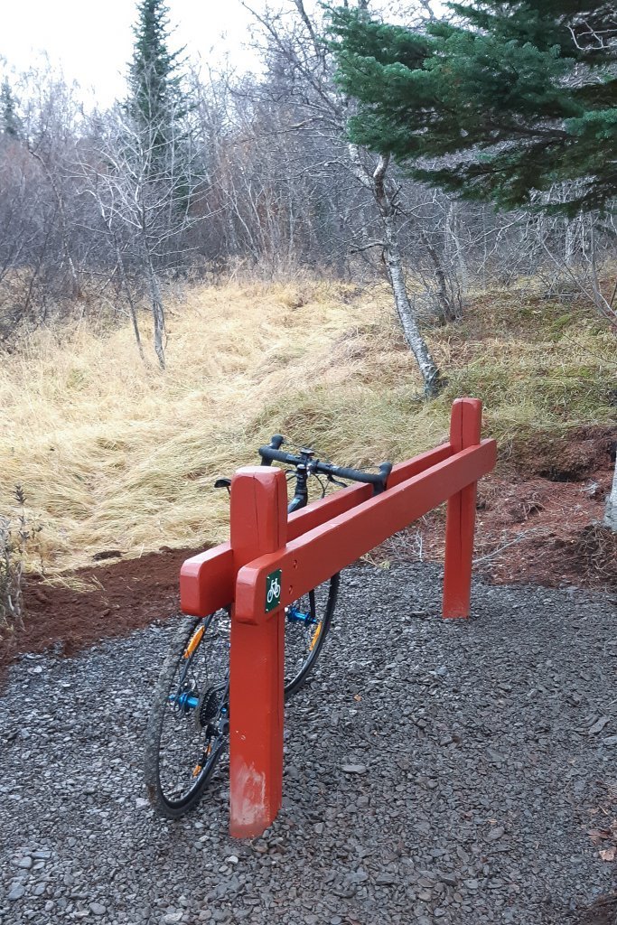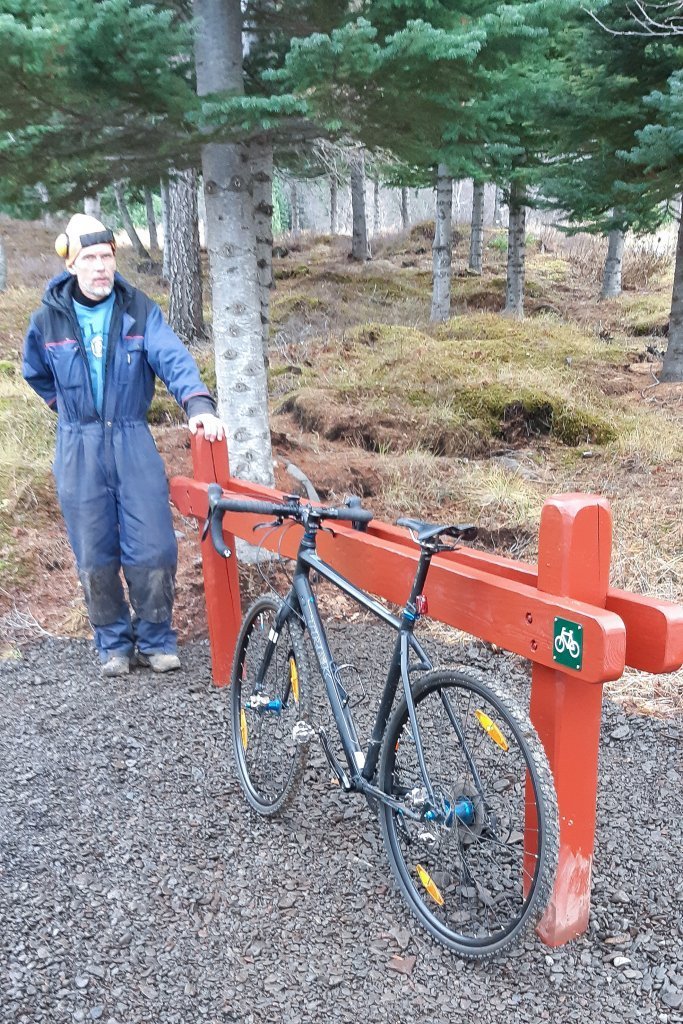 Nýi hjólastandurinn á Hallormsstað kominn í notkun. Ljósmynd: Þór Þorfinnsson