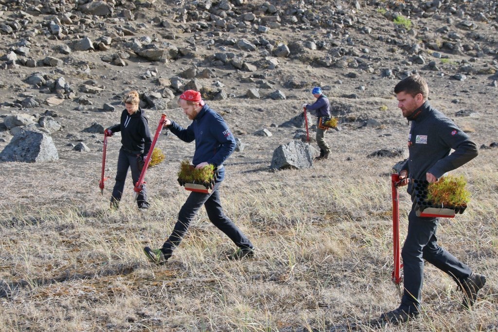 Unnið að endurheimt landgæða á uppblásnu landi: Ljósmynd: Pétur Halldórsson