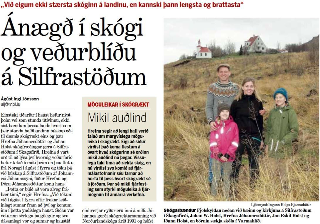 Einstakt tíðarfar í haust hefur nýst þeim vel sem stunda útivinnu, ekki síst bændum þessa lands hvort sem þeir stunda hefðbundinn búskap eða til dæmis skógrækt eins og þau Hrefna Jóhannesdóttir og Johan Holst skógfræðingar gera á Silfrastöðum í Skagafirði. Hrefna á vart orð til að lýsa því hvernig veðurfarið hefur tekið á móti þeim en þau fluttu frá Noregi í ágúst í fyrra og tóku þá við búskap á Silfrastöðum af Jóhannesi Jóhannssyni, föður Hrefnu og Þóru Jóhannesdóttur konu hans.