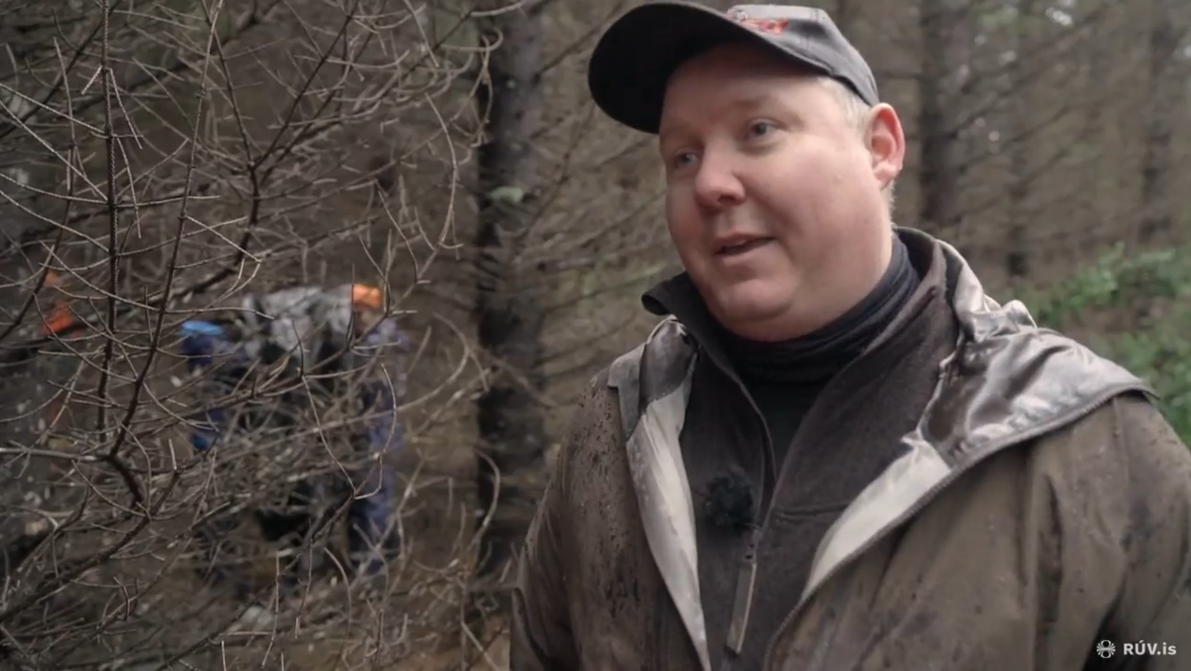 „Við erum að bæta við svokallað lífmassafall sem gert var fyrir tuttugu árum. Þá voru tré mæld og vigtuð til að átta sig á þvi hversu mikill lífmassi er í hverju tré. Til þess þarf náttúrulega að fórna nokkrum trjám," segir Bjarki í þættinum.