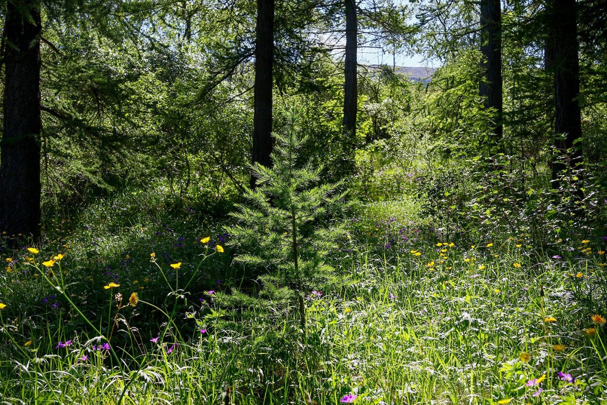 Uppvaxandi lerki í eldri skógi. Ljósmynd: Pétur Halldórsson
