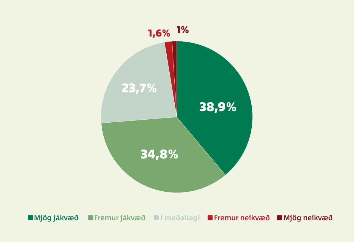 Kökuritið sýnir hlutfall svara við spurningunni um hversu jákvætt eða neikvætt fólk væri gagnvart Skógræktinni