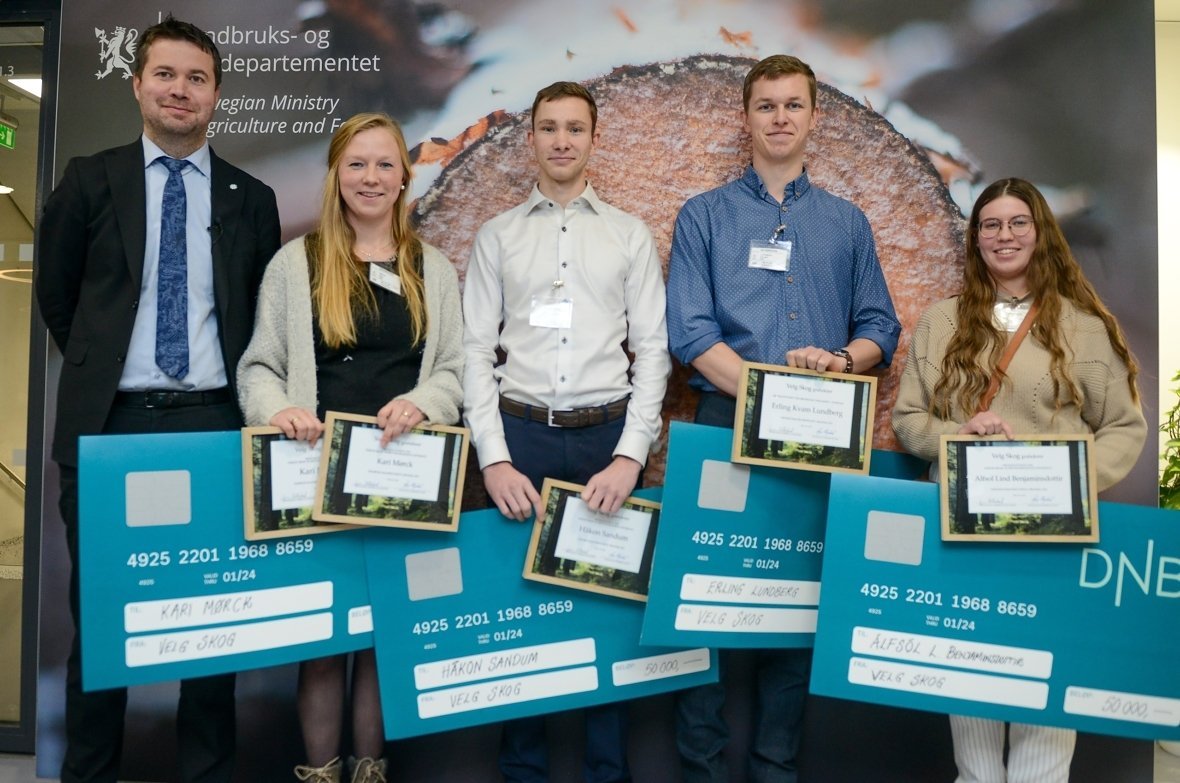 Árlega veita samtökin Norges Skogeierforbund framúrskarandi nemum í skógartengdum greinum viðurkenningar fyrir góðan árangur. Að þessu sinni fór athöfnin fram 30. nóvember. Viðurkenningarnar eru peningastyrkur undir kjörorðunum Velg Skog eða „veljið skóg“. Athöfnin á fimmtudag fór fram í norska matvæla- og  landbúnaðarráðuneytinu og sá ráðherrann, Geir Pollestad, um afhendingu styrkjanna.