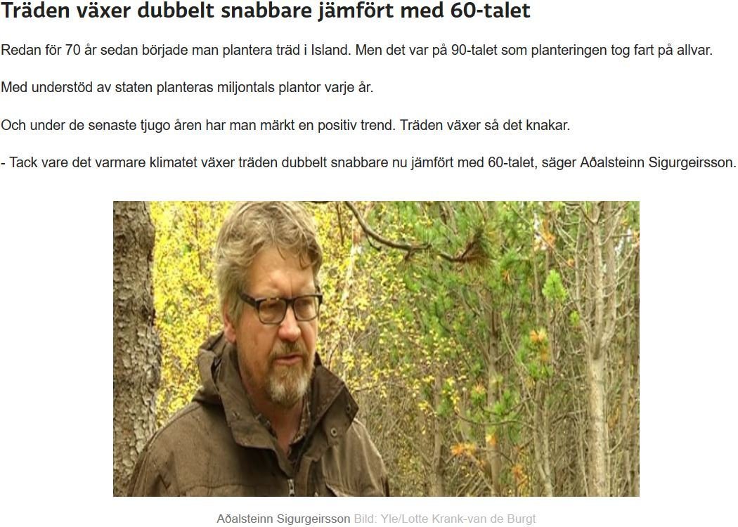 Sænska Yle fjallar um skógrækt og aðra ræktun á Íslandi við hlýnandi loftslag