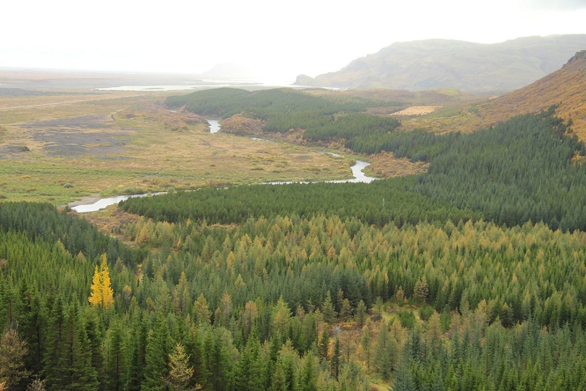 Séð til Sandár á úrugum haustdegi í þjóðskóginum á Skriðufelli Þjórsárdal. Ljósmynd: Pétur Halldórsson